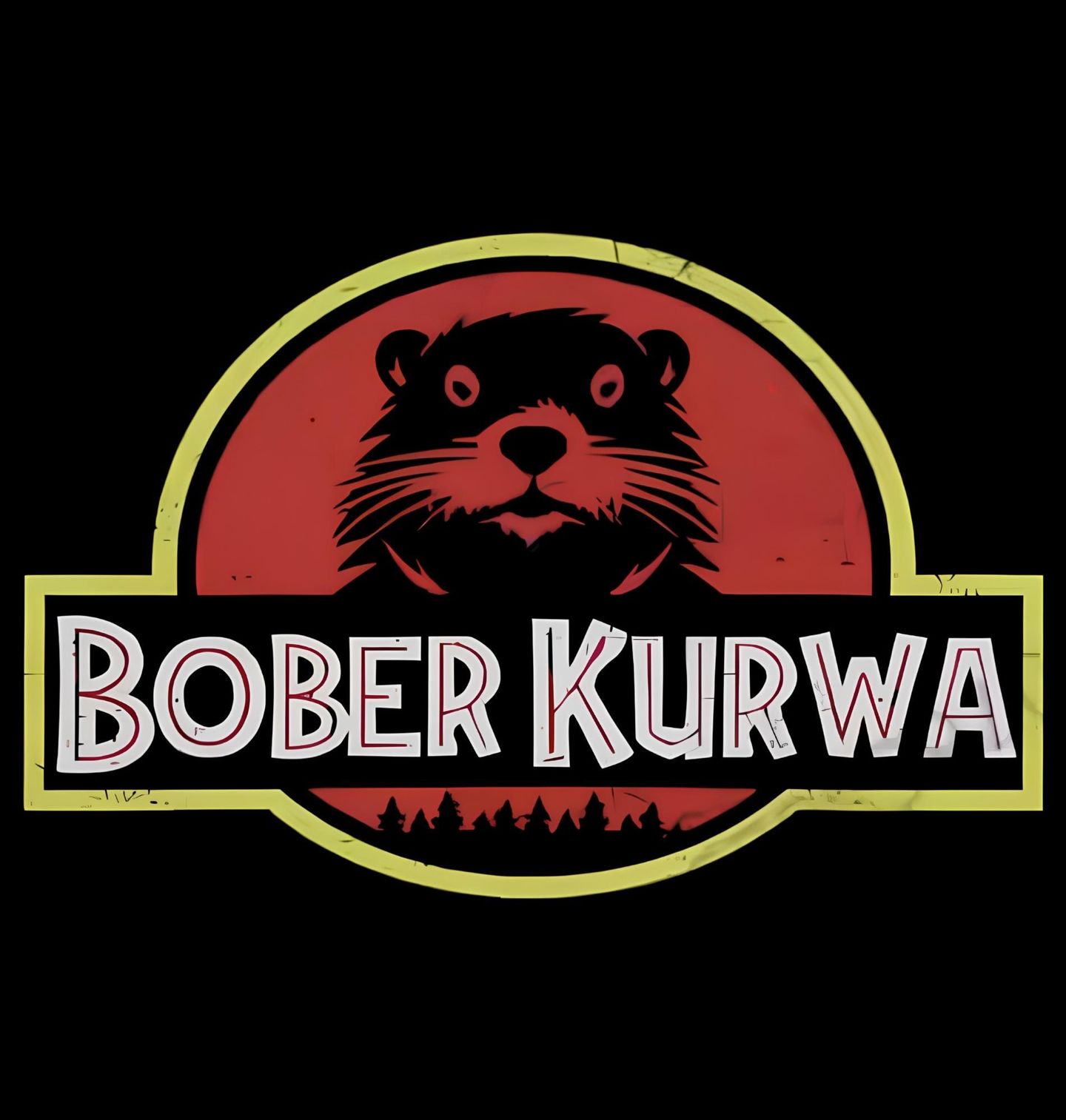 Pánské tričko Bobr z Jurského Parku Bober Kurwa. Stylový motiv inspirovaný internetovým fenoménem zobrazuje bobra v ikonickém logu s textem „BOBER KURWA“. Jedná se o parodii na Jurský park. Tento výraz pochází z polského slangového humoru a stal se populárním meme.