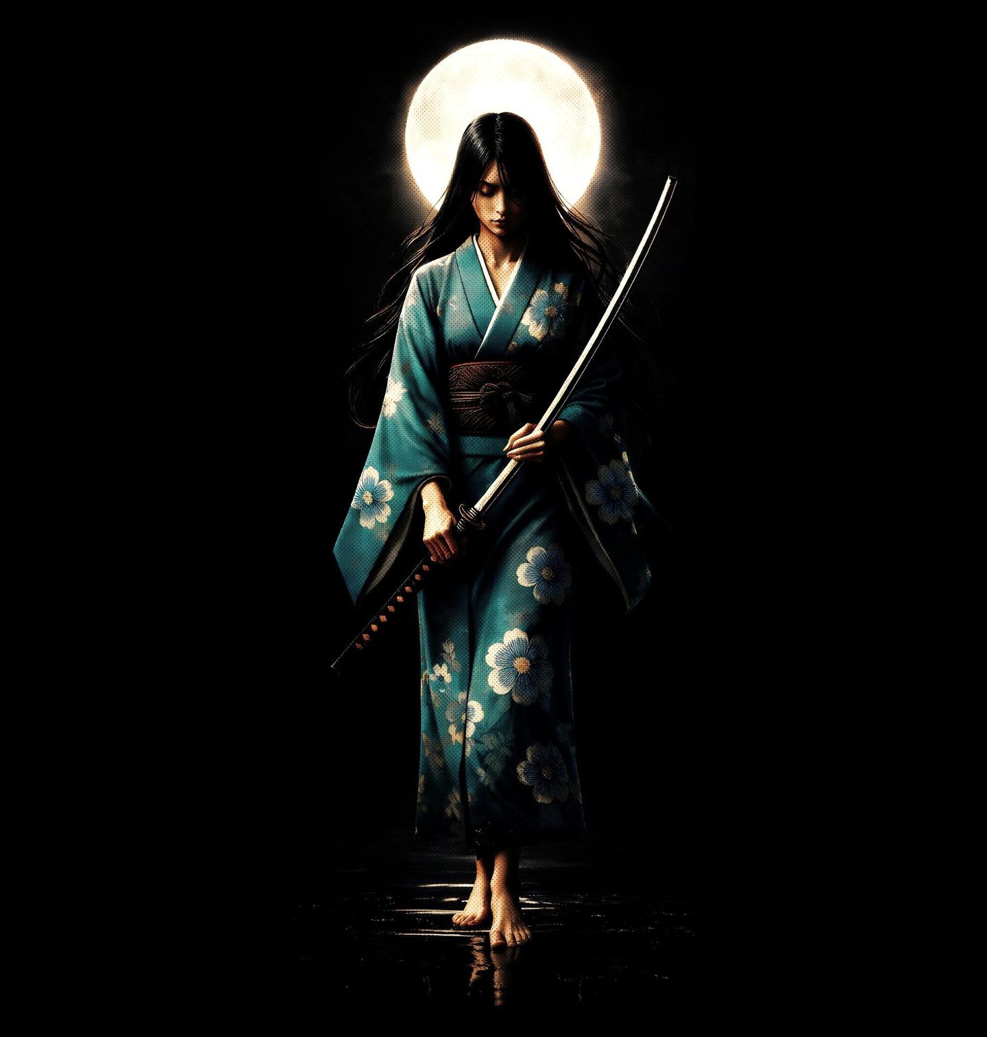 Dámské tričko Bojovnice z Řad Samurajů. Onna bugejša (女武芸者) je japonské označení pro ženy-válečnice předmoderního japonska. Tyto ženy bojovaly v bitvách po boku samurajů. Byly členkami válečnické třídy feudálního Japonska, které byly cvičeny v užívání zbraní k ochraně domácnosti, rodiny a cti v dobách války. Ostrá katana a měsíc v pozadí vytváří harmonii mezi krásou a nebezpečím.