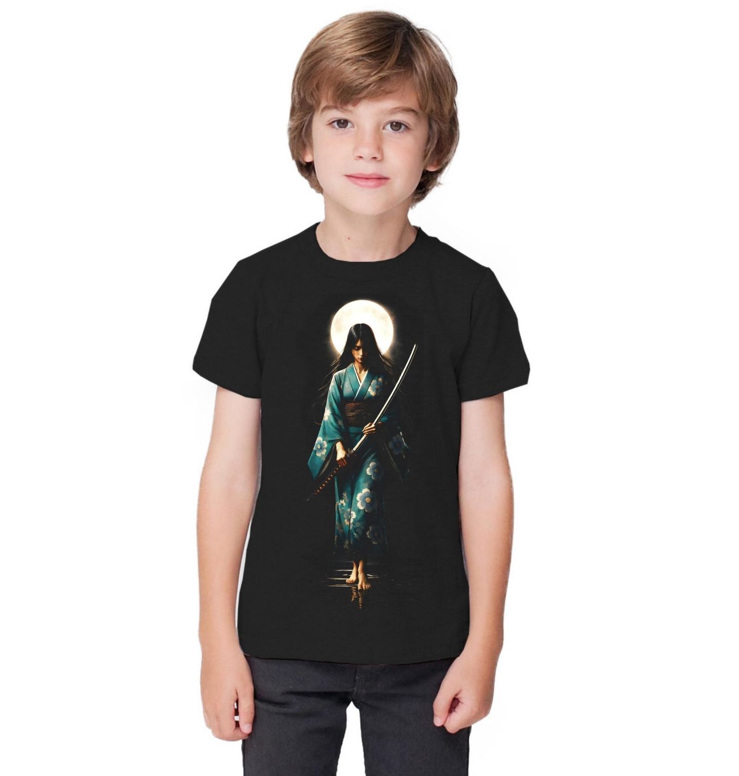 Dětské tričko Bojovnice z Řad Samurajů. Onna bugejša (女武芸者) je japonské označení pro ženy-válečnice předmoderního japonska. Tyto ženy bojovaly v bitvách po boku samurajů. Byly členkami válečnické třídy feudálního Japonska, které byly cvičeny v užívání zbraní k ochraně domácnosti, rodiny a cti v dobách války. Ostrá katana a měsíc v pozadí vytváří harmonii mezi krásou a nebezpečím.