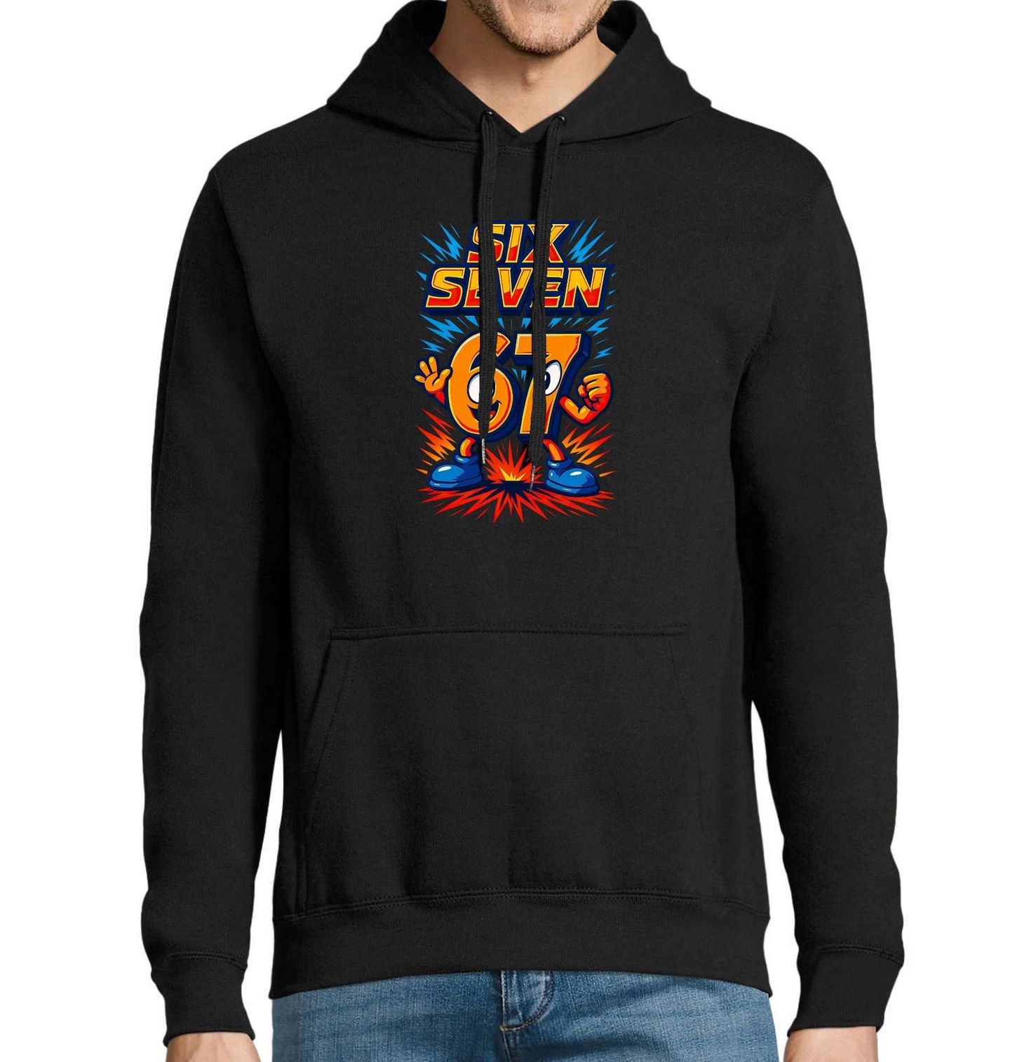 Pánská mikina Bojovníci 67 Six Seven Meme. Motiv 67 ve stylu six seven meme přináší veselý, barevný a komiksový design, kde jsou číslice 6 a 7 zobrazeny jako živé postavičky plné energie a úsměvů. Tento motiv je ideální pro všechny, kteří milují zábavu, hravé grafiky a chtějí vyniknout originálním stylem.