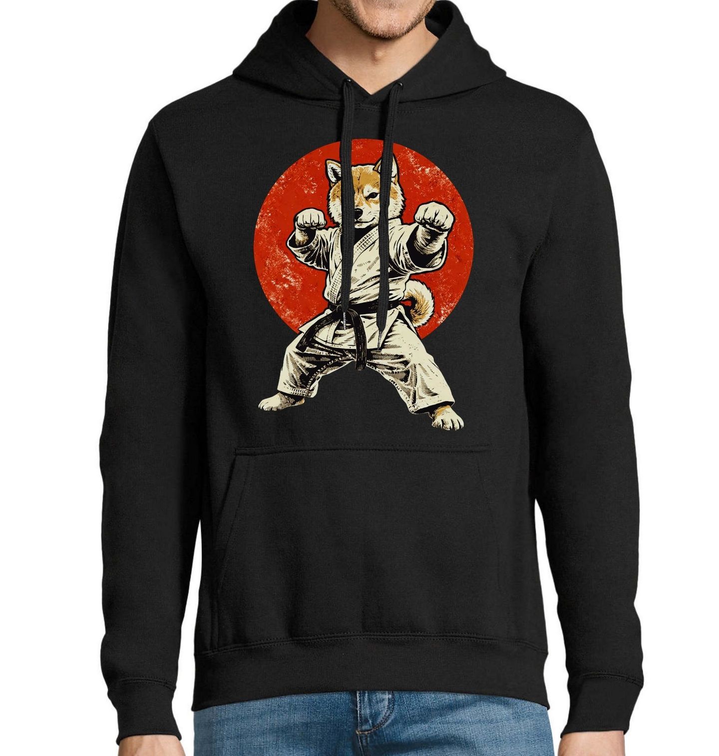 Pánská mikina Bojovník Shiba-Inu. Stylový design zachycuje odhodlaného psa ve stylu bojového umění, inspirovaný japonskou estetikou. Shiba Inu v postoji připraveném k akci působí silně i hravě zároveň, což z tohoto motivu dělá originální a energický design pro milovníky psů i bojových sportů.