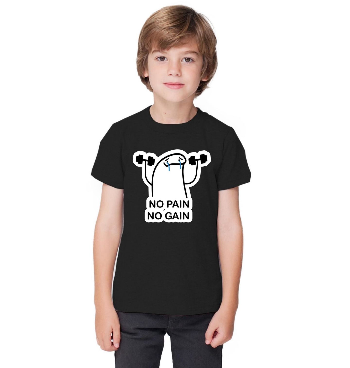 Dětské tričko Bolest k Úspěchu. Originální a zároveň vtipný motiv zobrazuje roztomilou postavičku, která zvedá činky, i když jí po tvářích tečou slzy. Pod ilustrací je známý motivační slogan „NO PAIN NO GAIN“, což znamená „Bez bolesti není zisk“. Design kombinuje humor s realitou tvrdého tréninku.