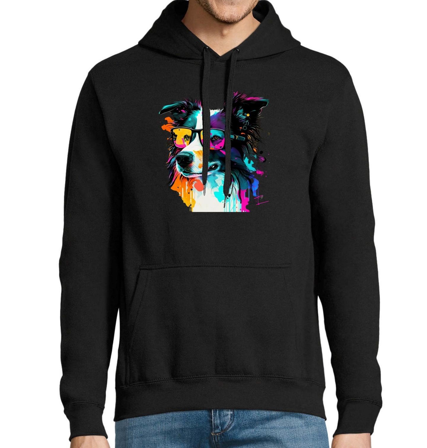 Pánská mikina Border kolie v Brýlích. Pes s výraznými slunečními brýlemi a pestrobarevným street-art pozadím zaujme na první pohled. Ideální pro každého pejskaře, který miluje výjimečný design a nedá dopustit na Border kolii – nejchytřejšího parťáka mezi psy. Design kombinuje urban art styl, živé barvy a vtip, díky čemuž vzniká jedinečný vizuál vhodný jak pro běžné nošení, tak jako dárek.