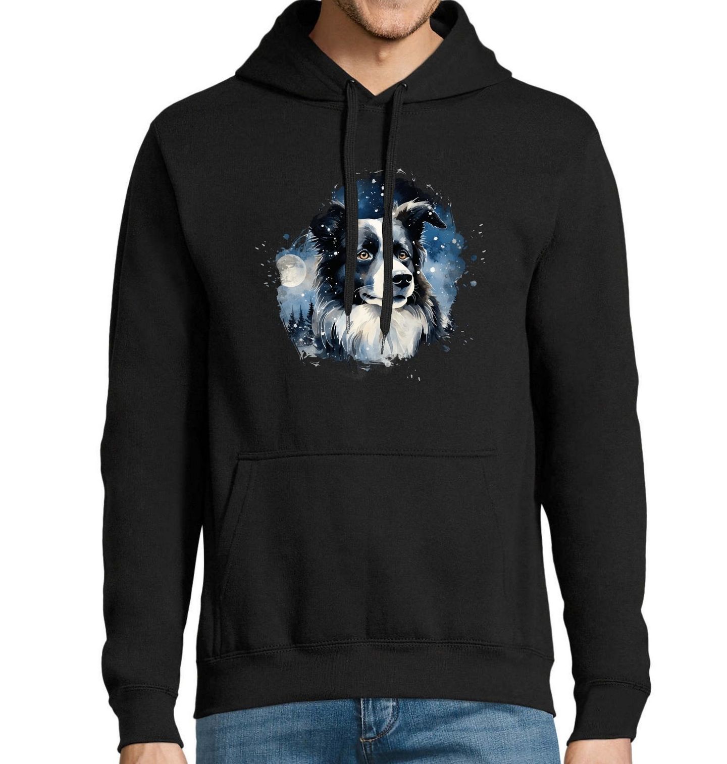 Pánská mikina Border kolie v Měsíční Noci
