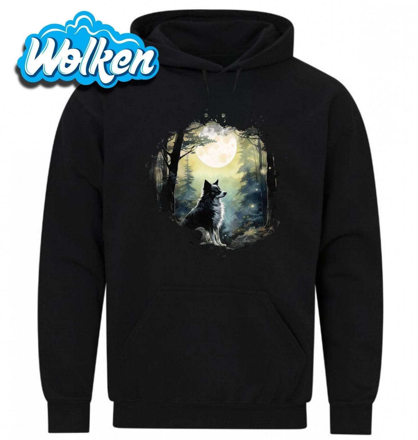 Pánská mikina Border kolie v Měsíčním Lese. Toto tričko s motivem věrného psa rasy Border kolie v nočním lese pod úplňkem je ideální pro každého, kdo miluje přírodu, svobodu a samozřejmě psy. Border kolie je pes s neobyčejnou inteligencí a loajalitou – a právě tato ilustrace vystihuje jeho klidnou sílu a spojení s lesem i noční oblohou.