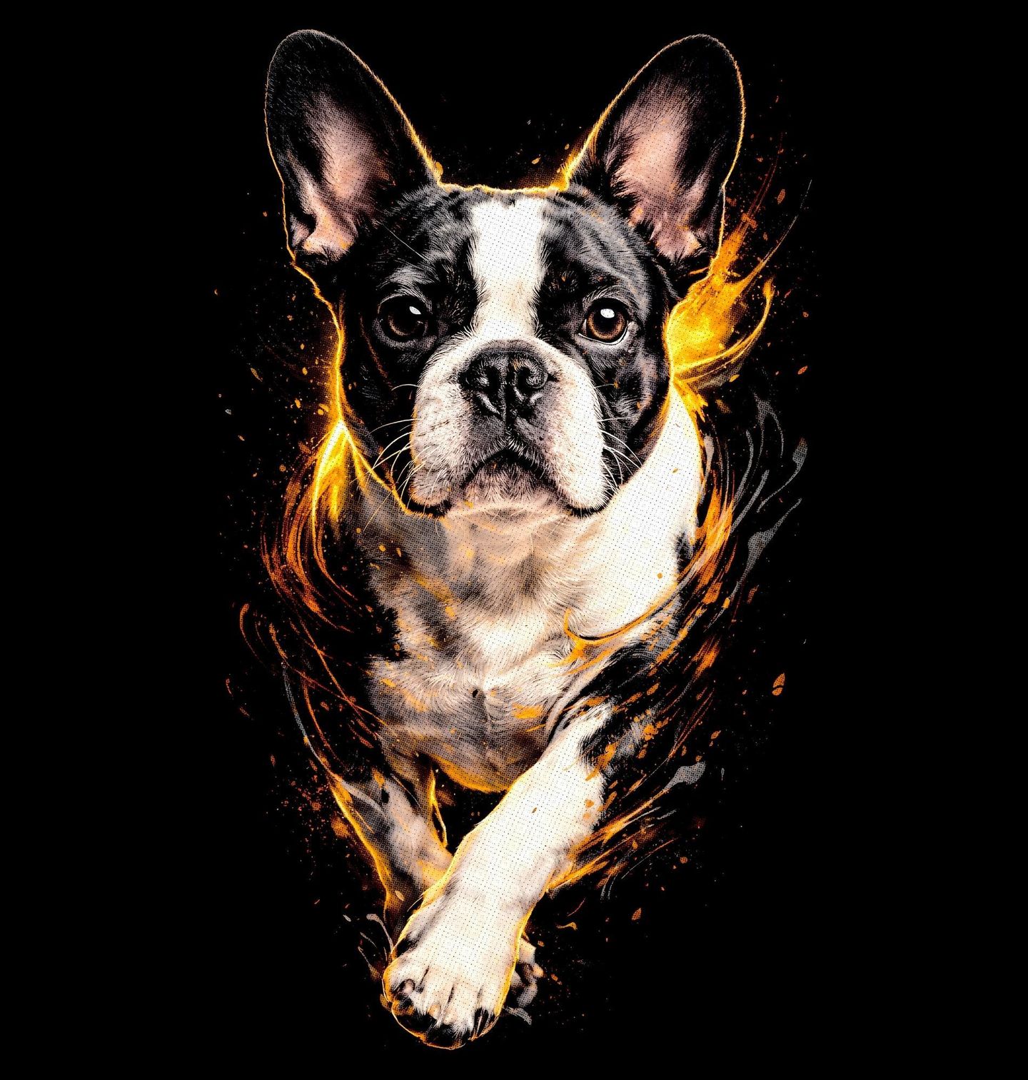 Dámské tričko Bostonský teriér v Běhu. Bostonský teriér je ideální společník – veselý, chytrý a vždy připravený rozdávat radost. Díky svému stylovému vzhledu si vysloužil přezdívku „americký gentleman“, což tento motiv skvěle podtrhuje. Tento charismatický pes je známý svým typickým „frakem“, velkýma očima a přátelskou povahou. Každý pejskař ocení design, který zachycuje jeho eleganci i hravost.