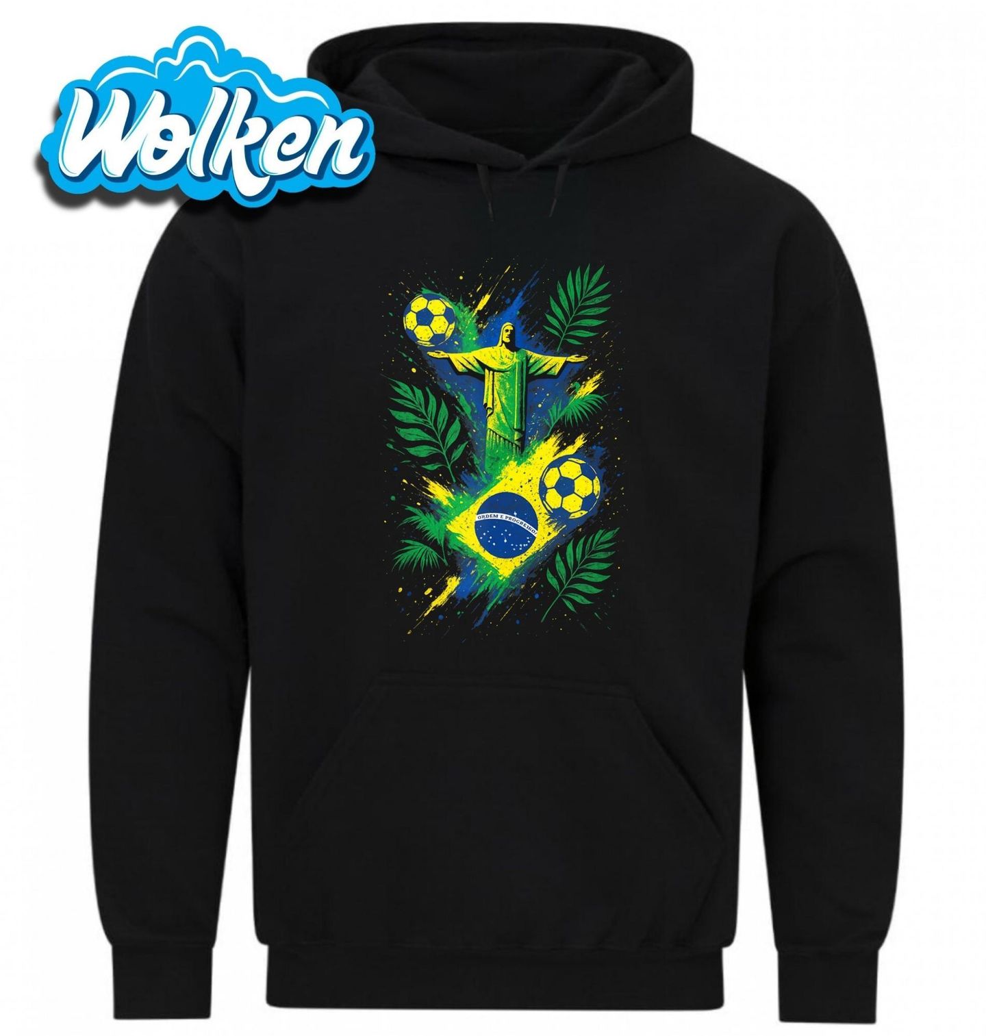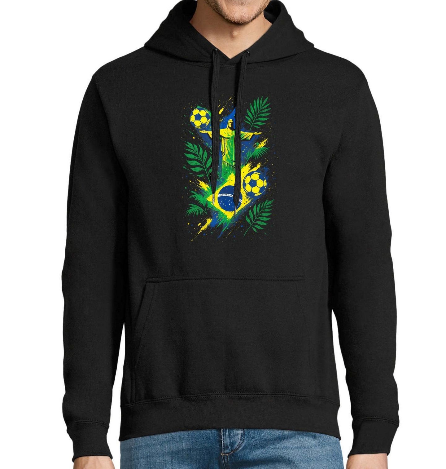 Pánská mikina Brazilská Socha Spasitele Fotbalu. Toto tričko oslavuje fotbals nejslavnějším symbolem Brazílie - sochou Krista Spasitele (Cristo Redentor), která se tyčí nad Riem de Janeirem. V pozadí brazilská vlajka, tropické listy a žluto-zelené míče dotvářejí vizuál, který křičí: Tohle je domov fotbalu! Ideální pro fanoušky, kteří fandí srdcem.