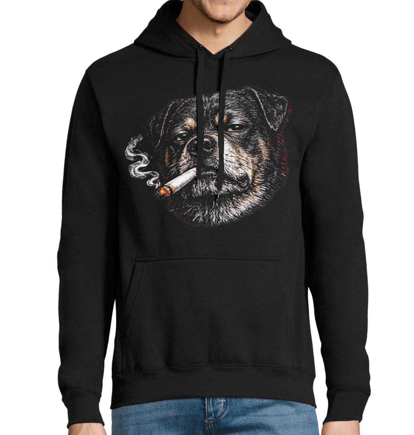 Pánská mikina Bruselský Grifonek s Cigaretou. Detailní portrét psa plemene bruselského grifonka působí drsně a zároveň stylově. Kouř z cigarety a výraz sebevědomého psa vytváří jedinečnou atmosféru, která kombinuje humor, originalitu a charakter. Tento pes motiv je ideální pro všechny, kdo mají rádi výrazné a nezaměnitelné designy.