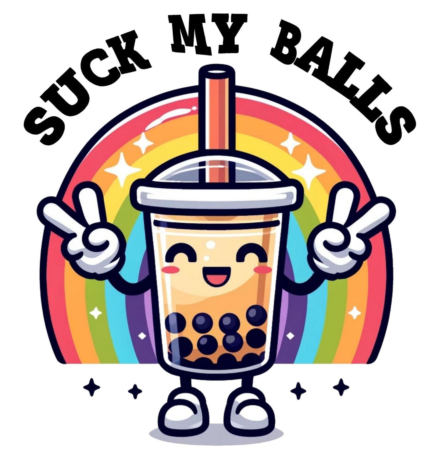 Pánské tričko Bubble Tea Suck My Balls. Vtipný a výstřední motiv pro milovníky bubble tea, kteří se nebojí provokovat. „Suck my balls“ – vtipná slovní hříčka v překladu Vysaj moje kuličky. Ideální pro každého fanouška bubble tea, který má smysl pro humor a chce se odlišit.