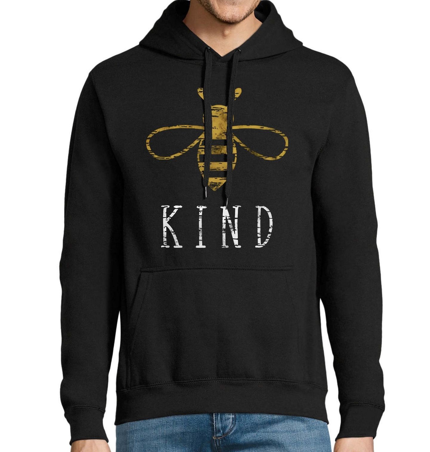 Pánská mikina Buď Hodný Bee Kind. Tento stylový potisk kombinuje luxusní zlatá včela a silné poselství v nápisu Kind. Vintage design s texturou dodává tričku unikátní charakter a eleganci na černém podkladu. Tento kousek musí mít každý milovník příroda a lidé, kteří chtějí šířit laskavost a pozitivní energie. Je to perfektní dárek pro každého, kdo věří, že na dobré slovo a styl se nikdy nezapomíná. Oblečte si tento originální design a buďte inspirace pro své okolí.