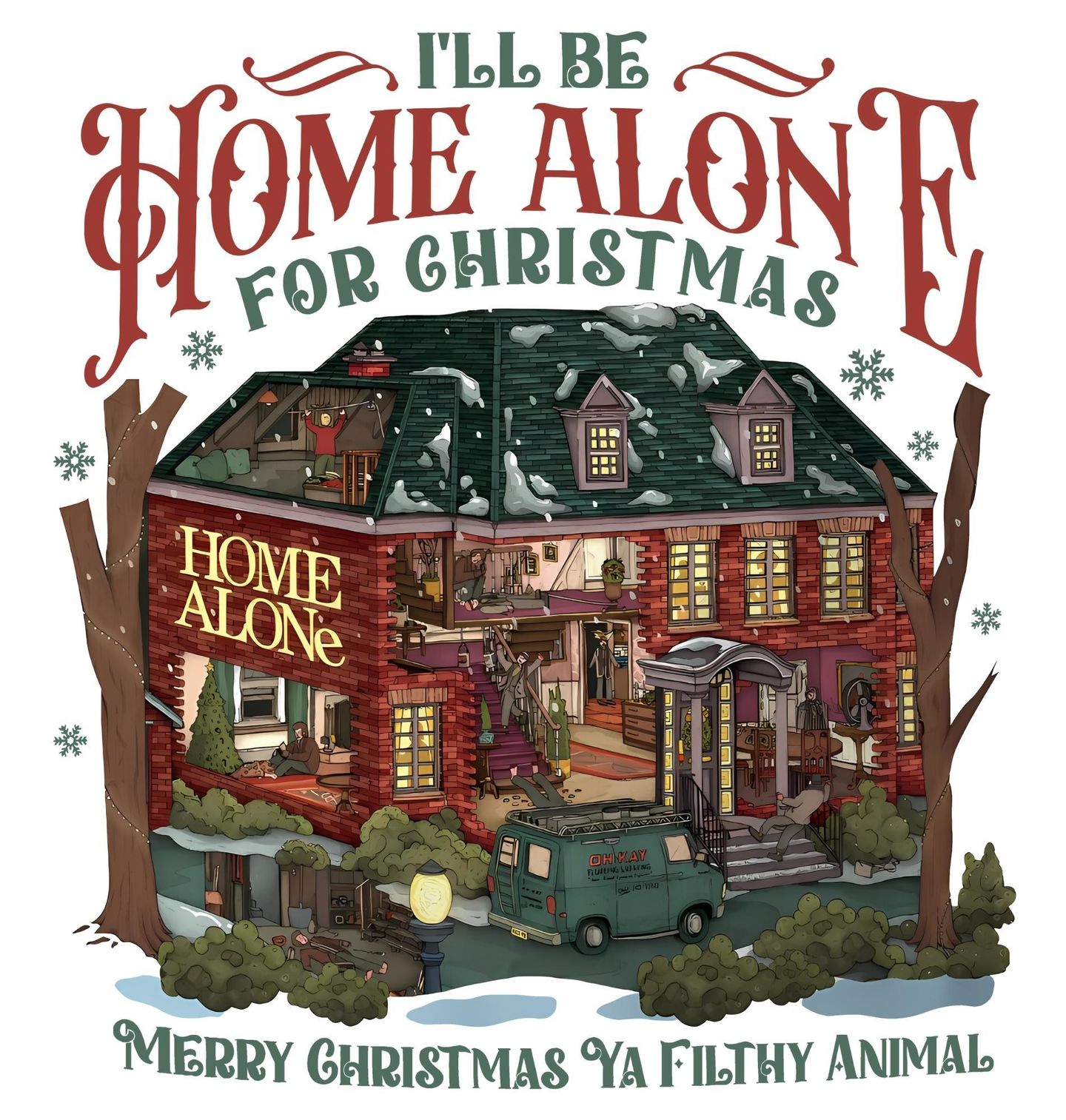 Pánské tričko Budu Sám Doma na Vánoce. Legendární motiv inspirovaný filmem Sám doma přináší pořádnou dávku nostalgie i humoru. Tento design s ikonickým domem McCallisterových vám připomene všechny nezapomenutelné scény a hlášky, bez kterých by Vánoce nebyly úplné. MERRY CHRISTMAS YA FILTHY ANIMAL → „Veselé Vánoce, ty špinavé zvíře“ (slavná hláška z filmu Sám doma 2).