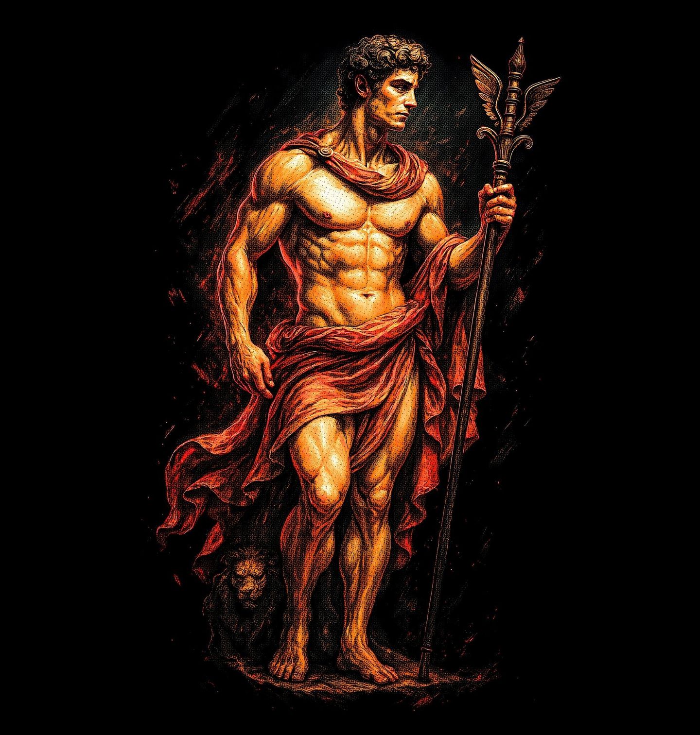 Dámské tričko Bůh Hranic Hermés. Hermés je starobylý řecký bůh pastvin, stád a ochránce cest a hranic. Hermés byl poslem bohů, ochráncem cestovatelů, obchodníků i zlodějů. Jeho typickým symbolem je kaduceus – hůl s propletenými hady a křídly, která představuje rovnováhu, komunikaci a diplomatickou moc. Nebyl bohem dobra nebo zla. Byl bohem důvtipu, obchodu, cest, komunikace a hranic. A hranice jsou přesně to klíčové – pohyboval se mezi světy, mezi pravidly, mezi pravdou a lstí.
