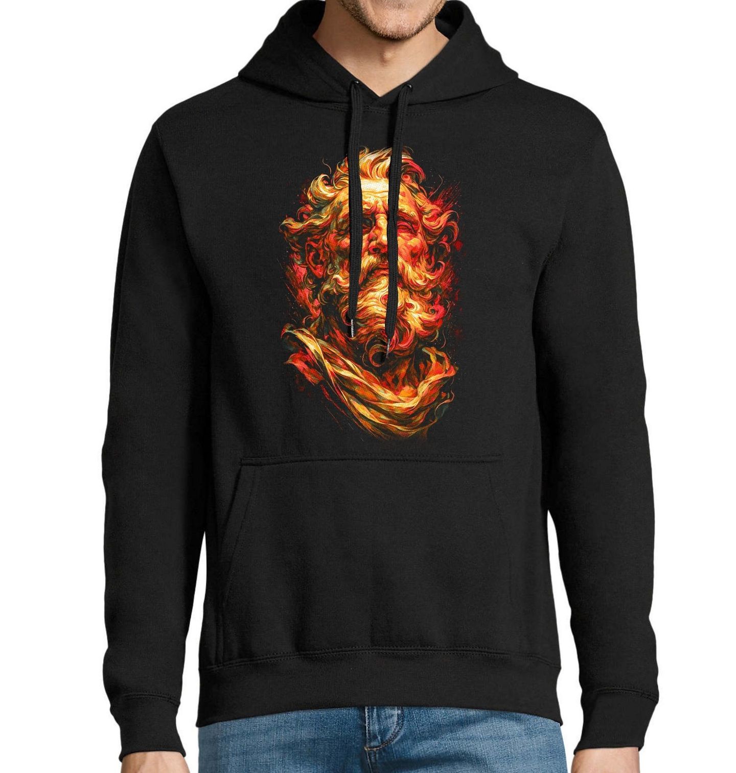 Pánská mikina Busta Platóna. Portrét zachycuje jednoho z největších myslitelů starověku – Platóna, filozofa, jehož učení formovalo celé dějiny západního myšlení. Platón byl žákem Sókrata a učitelem Aristotela. Ve svých dialozích rozvíjel myšlenku světa idejí, spravedlnosti a dokonalého státu. Jeho dílo je dodnes jedním ze základních pilířů filozofie i evropské kultury.