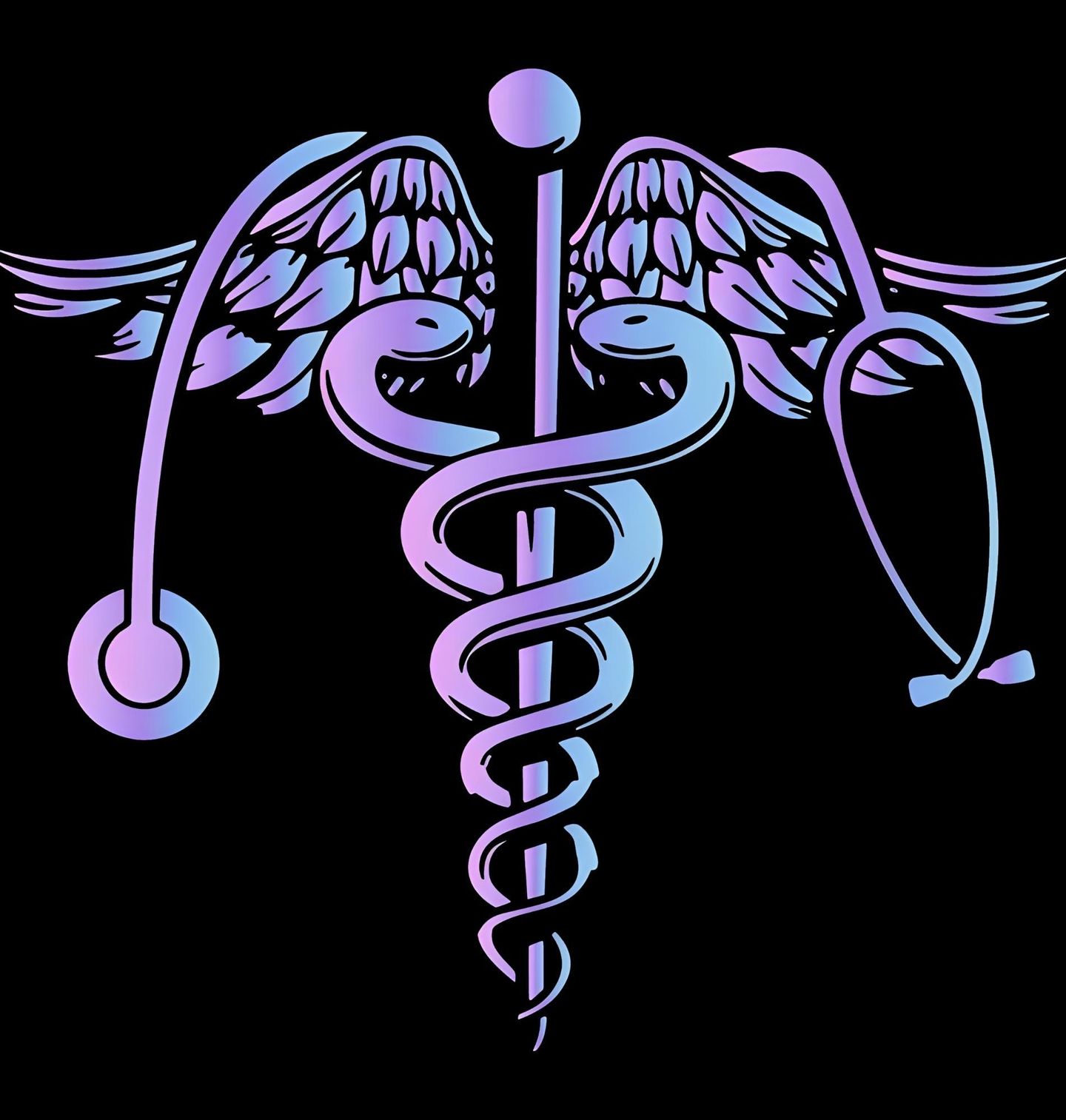Pánské tričko Caduceus Anděl zdravotnictví. Kaduceus – symbol tradičně spojovaný s lékařstvím a zdravotnictvím. Je zde vyobrazen hůl obtočená dvěma hady, s křídly a stetoskopem, což moderně vyjadřuje respekt, odbornost a lidskost, kterou každý pracovník ve zdravotnictví přináší. Ideální design pro zdravotníky a doktory.