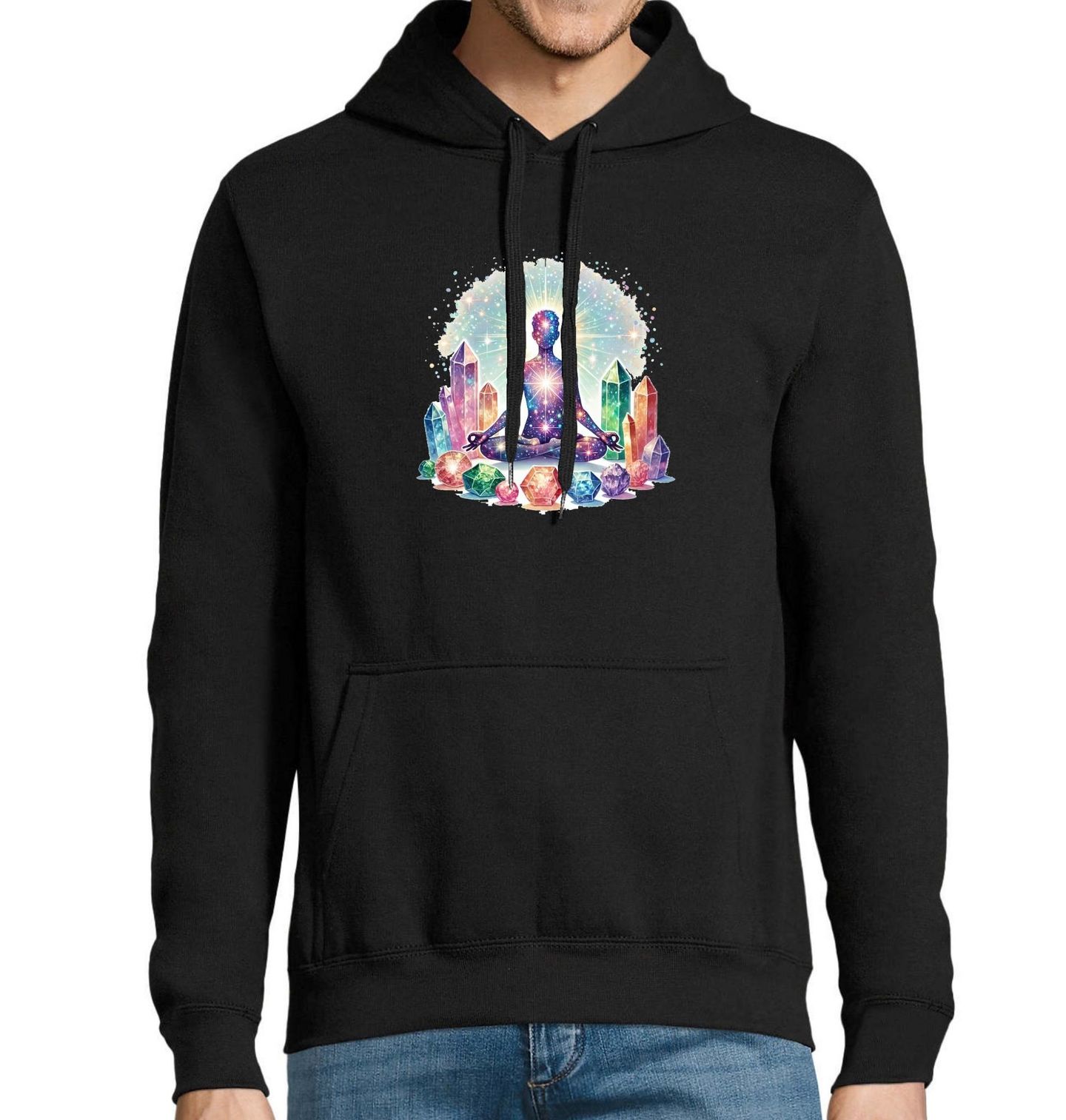 Pánská mikina Čakrová Energie z Krystalů. Každý krystal symbolizuje jednu z čaker, každý barevný tón rezonuje s klidem, vědomím a probuzenou silou. Ideální pro milovníky meditace, krystalů, duchovna i těch, kteří věří v sílu barev a klid mysli. Vychutnej si každodenní „namaste moment“ v pohodlí stylového spirituálního designu.