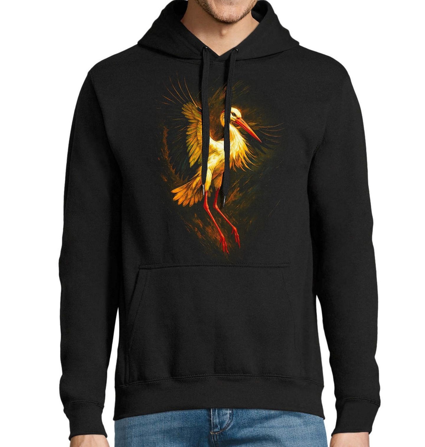 Pánská mikina Čáp bílý. Jeden z nejznámějších a nejoblíbenějších opeřenců Evropy. Čáp bílý je ikonický pták, který symbolizuje návrat jara, nový život, rodinu a domov. V letu působí majestátně a klidně zároveň, což z tohoto motivu činí ideální dekoraci pro milovníky přírody, venkova i symbolických zvířecích motivů.