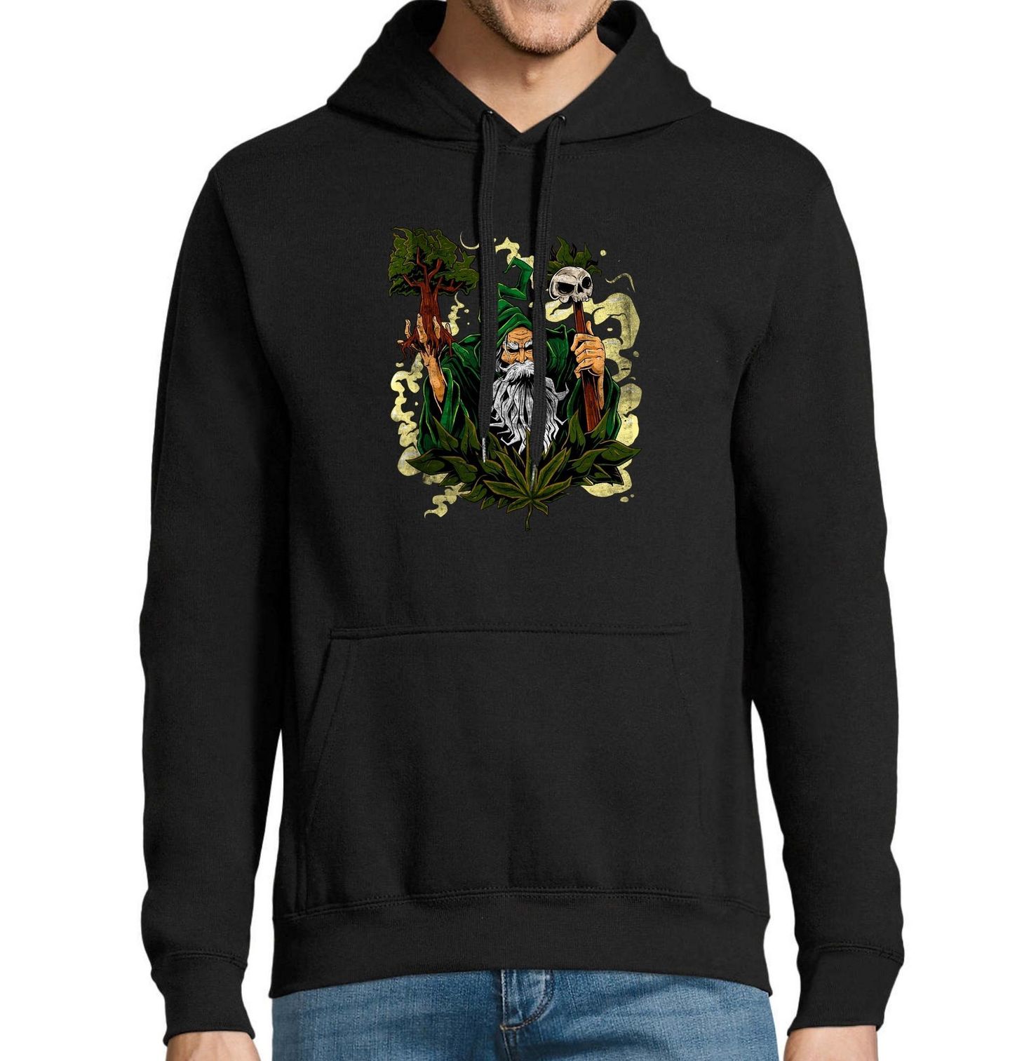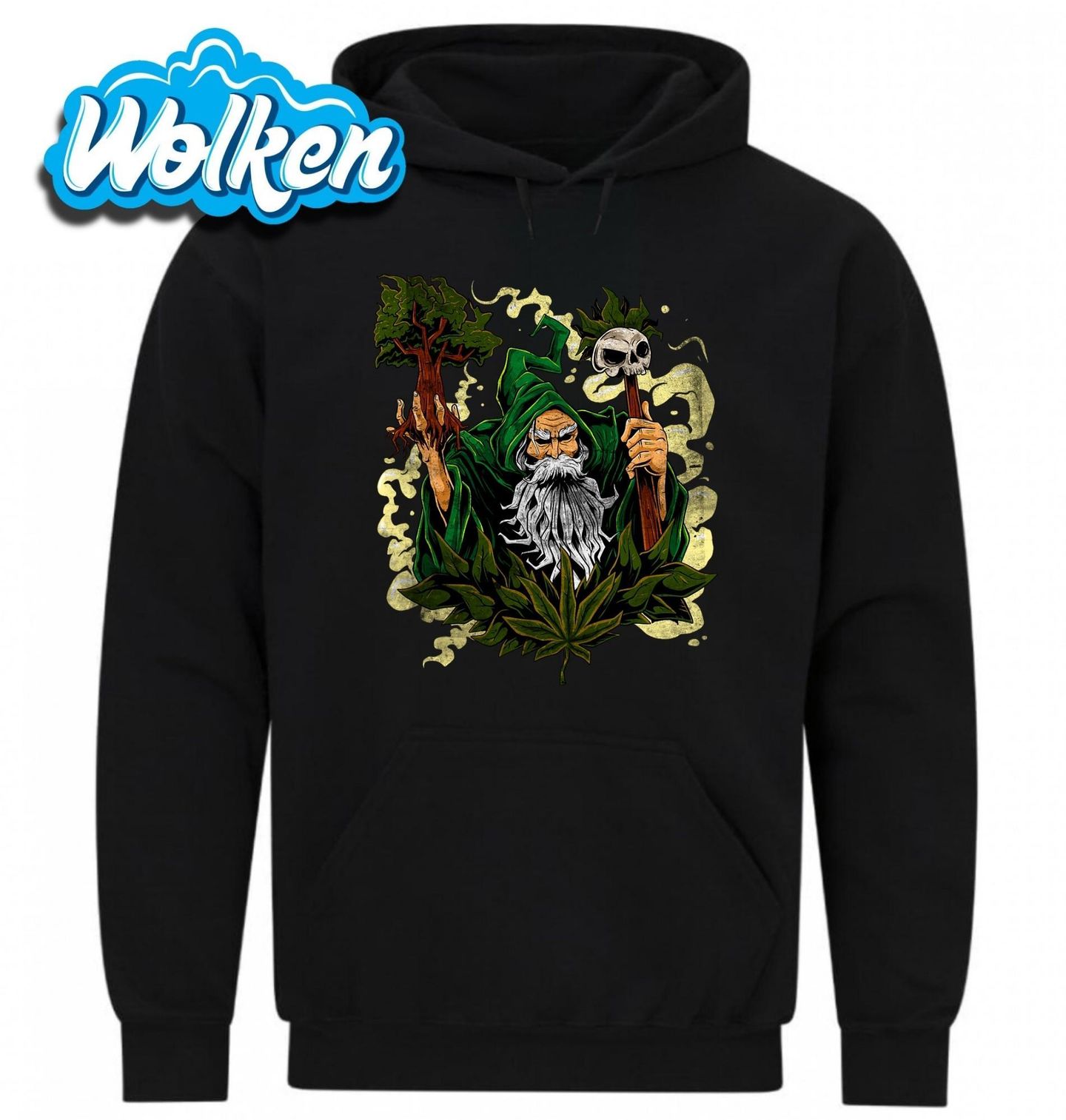 Pánská mikina Čaroděj Trávy Weed Wizard. Stylový čaroděj v zeleném plášti, kouzelná hůl a mocná listová magie – ideální pro všechny, kdo si užívají pohodové chvíle se svou oblíbenou rostlinkou. Perfektní dárek pro každého stonera, milovníka cannabisu nebo mistra domácích rituálů. Tráva. Marihuana. Čaroděj. To stačí.