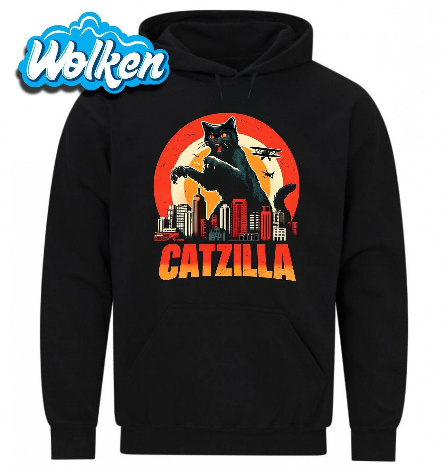 Pánská mikina Catzilla Útočí Kočka Godzilla. Když se kočičí nadvláda nad domácností už nestačí, přichází Catzilla! Tento epický design zachycuje obří kočku devastující město ve stylu klasických monster filmů. S ohnivým západem slunce v pozadí, letadly v akci a ikonickým nápisem, tento motiv dokonale vystihuje sílu a nezkrotnost našich kočičích vládců.