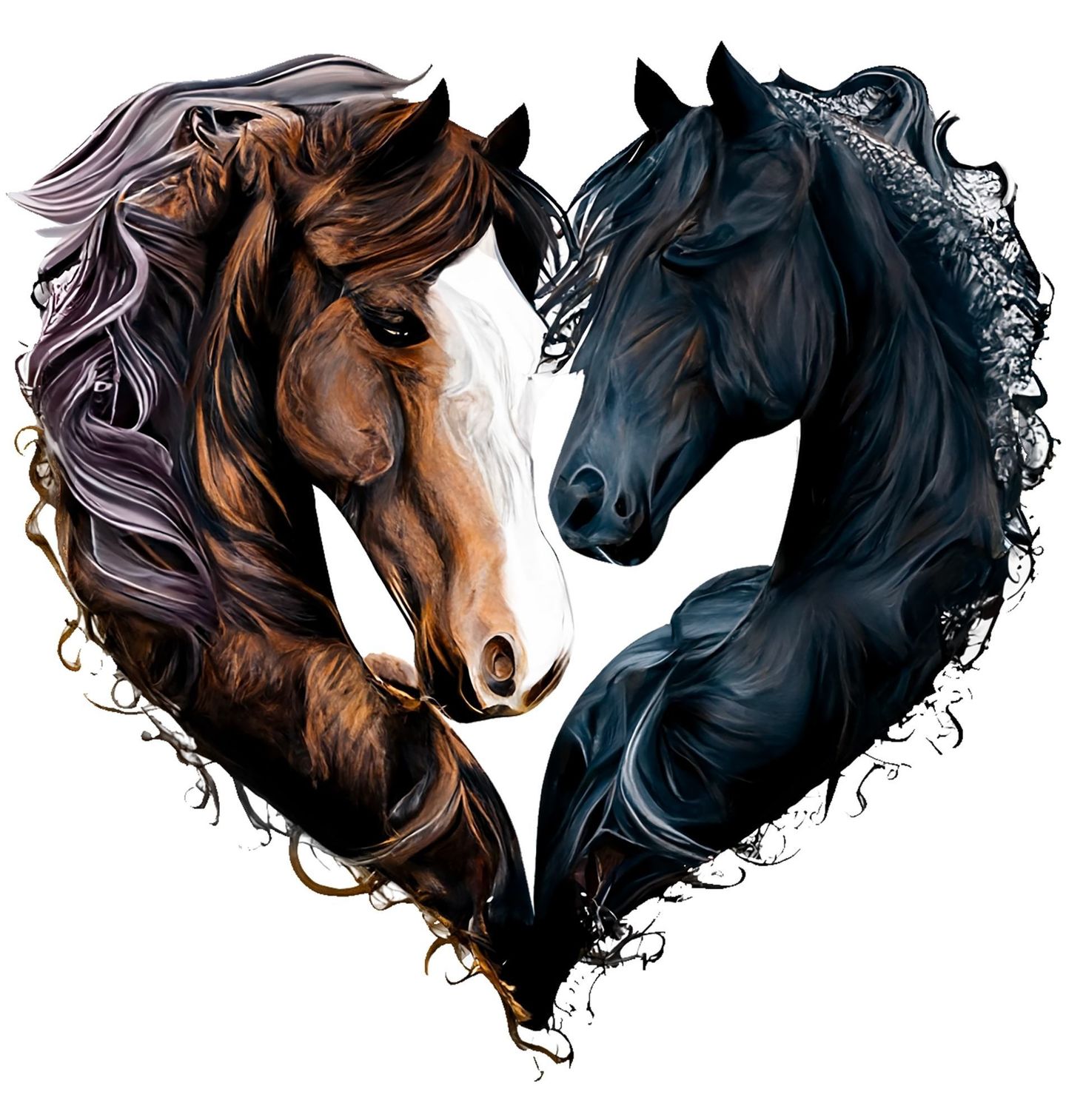 Pánské tričko Černý a Hnědý Kůň Věčná láska. Silný a emotivní motiv, kde dva koně vytvářejí tvar srdce, symbolizuje hluboké pouto, důvěru a harmonii. Každý detail tohoto designu vyjadřuje cit, klid i sílu, kterou kůň přináší do života člověka. Tento motiv osloví všechny, pro které nejsou koně jen zvířata, ale bytosti spojené s duší a emocemi.