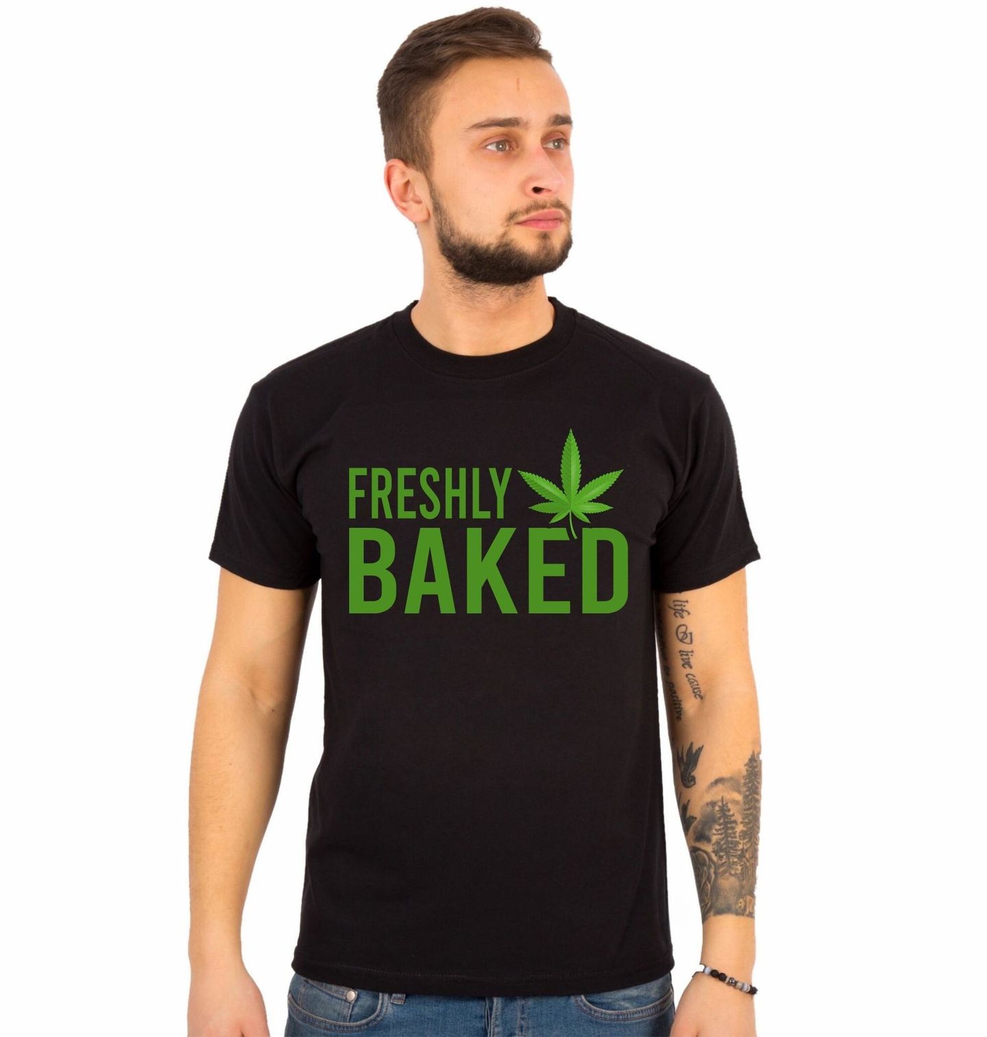 Pánské tričko Čerstvě upečeno Freshly Baked. Výrazný nápis „Freshly Baked“ doplněný ikonickým listem jasně odkazuje na kulturu, styl a vizuální symboliku, kterou reprezentuje marihuana. Motiv je určen pro fanoušky street stylu, popkultury a pro všechny, kteří si rádi dají smotaný joint.