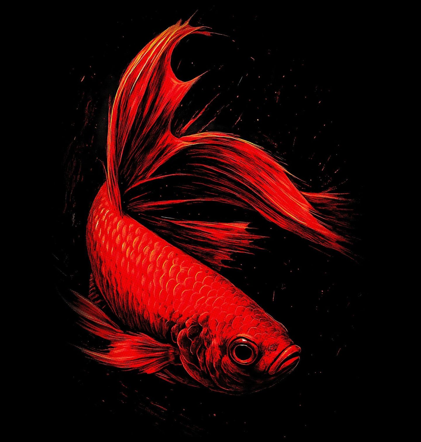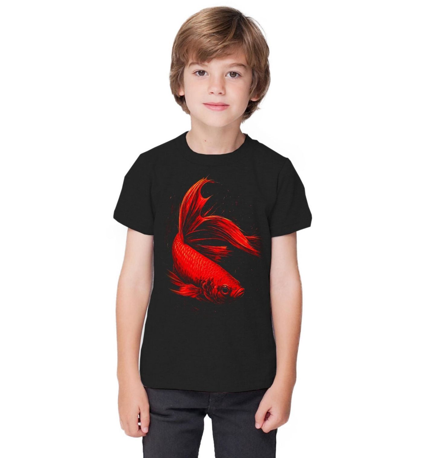 Dětské tričko Červená Bojovnice pestrá. Ohnivě červená ryba s dlouhými, vlajícími ploutvemi působí hrdě, nezkrotně a sebevědomě. Bojovnice pestrá je celosvětově jednou z nejoblíbenějších akvarijních ryb. Každý zkušený rybář v tomto motivu snadno rozpozná respekt k síle jednotlivce.
