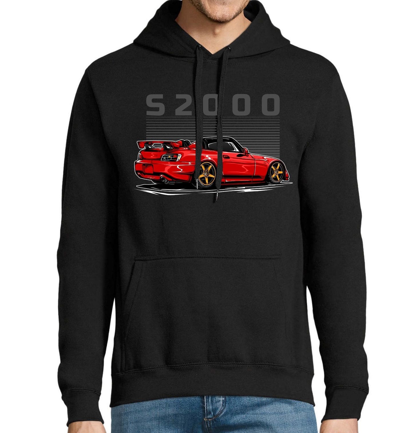 Pánská mikina Červená Honda S2000. Dynamický motiv zachycuje ikonické sportovní auto Honda S2000 v upraveném JDM stylu s agresivním postojem a výraznými detaily. Čisté linie karoserie, nízký stance a sportovní charakter dělají z tohoto designu ideální volbu pro každého, kdo miluje japonská auta a precizní techniku.