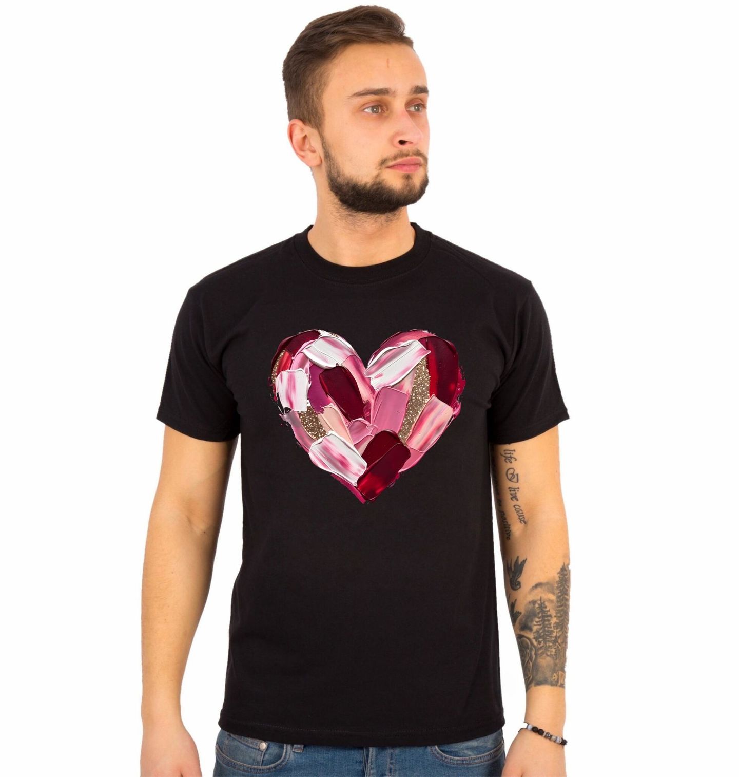Pánské tričko Červená Paleta Barev. Tento výrazný motiv zachycuje srdce vytvořené z bohatých tahů barvy v odstínech růžové, červené a krémové, doplněné jemným zlatým akcentem. Moderní malířský styl dodává motivu umělecký charakter a činí jej nepřehlédnutelným na první pohled. Design je ideální volbou jako dárek pro valentýn, výročí nebo jakoukoli příležitost, kdy chcete vyjádřit city beze slov.