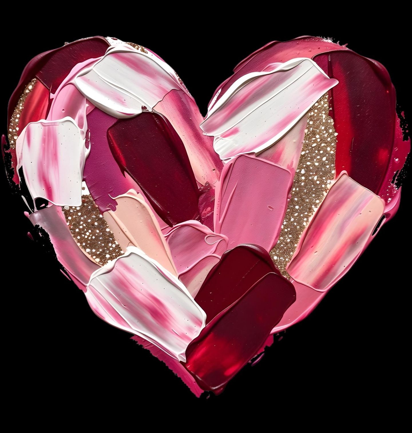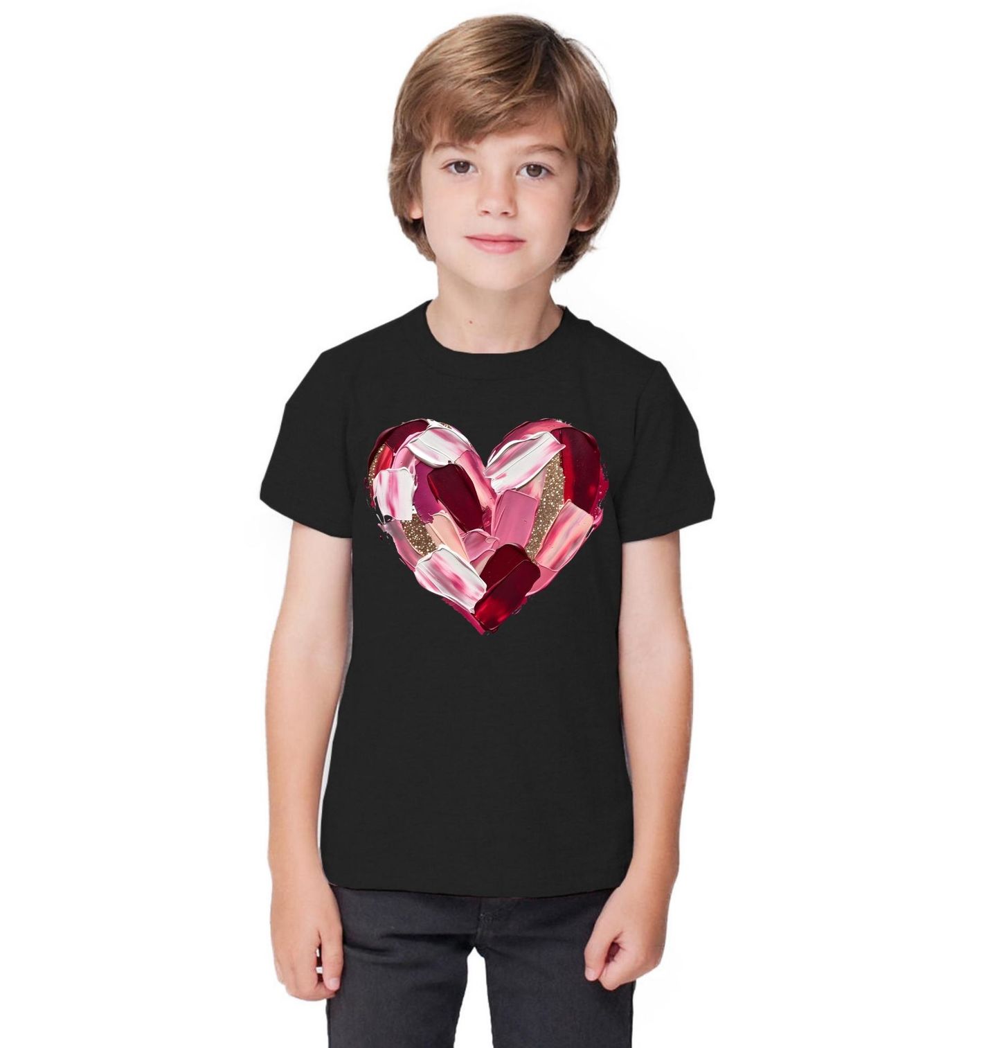 Dětské tričko Červená Paleta Barev. Tento výrazný motiv zachycuje srdce vytvořené z bohatých tahů barvy v odstínech růžové, červené a krémové, doplněné jemným zlatým akcentem. Moderní malířský styl dodává motivu umělecký charakter a činí jej nepřehlédnutelným na první pohled. Design je ideální volbou jako dárek pro valentýn, výročí nebo jakoukoli příležitost, kdy chcete vyjádřit city beze slov.