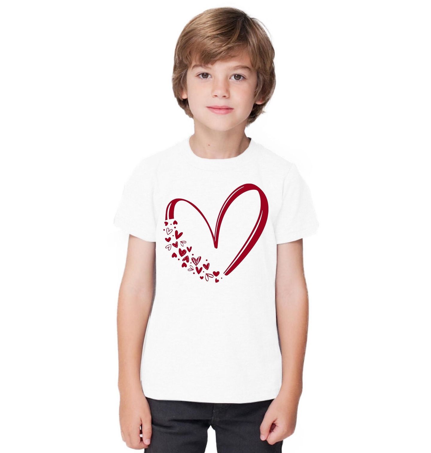 Dětské tričko Červené Srdce Plné Lásky. Jednoduché červené srdce doplněné drobnými motivy lásky působí hravě. Minimalistický styl dává vyniknout emocím. Design srdce je ideální pro romantické duše.