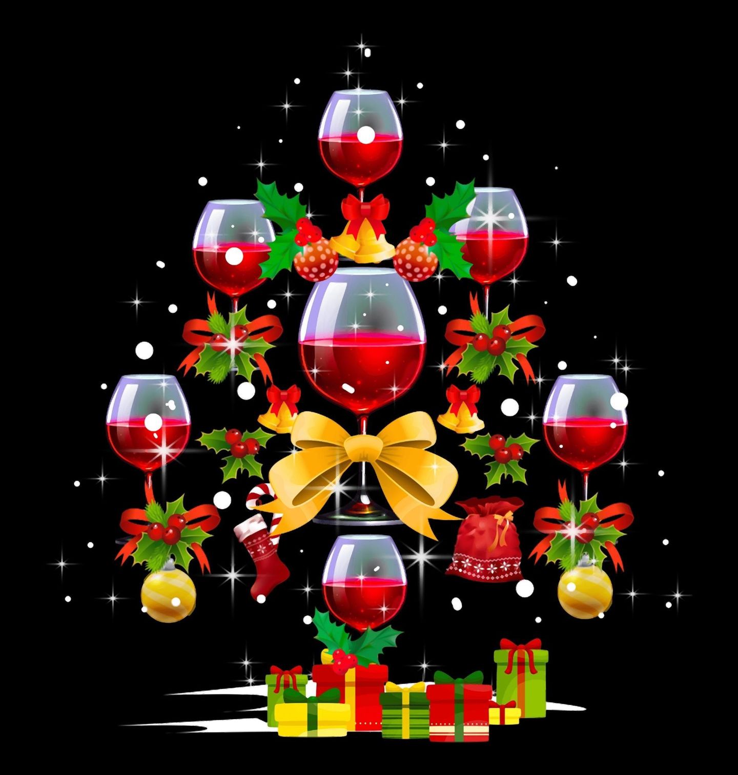 Dámské tričko Červený Vinný Stromek. Když se řeknou Vánoce, většina si vybaví stromeček, dárky a sváteční pohodu. Tento originální motiv ale spojuje vánoční kouzlo s oblíbeným nápojem – vínem. Sklenice červeného vína jsou poskládány do tvaru vánočního stromku, ozdobené mašlemi, cesmínou a dárky. Vánoce a víno se tady mění v dokonalou kombinaci radosti a elegance.