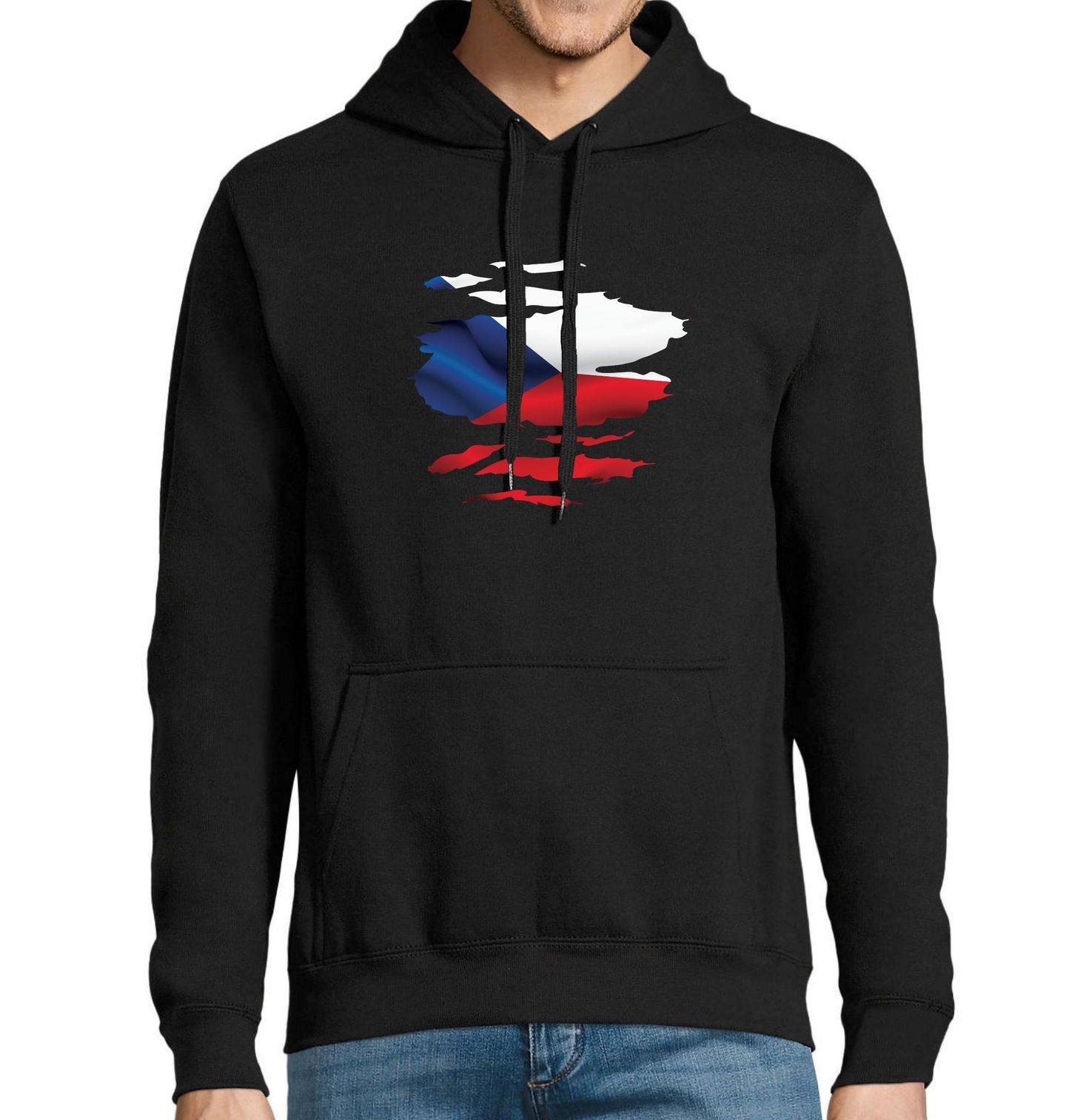 Pánská mikina Česká Hrdost Vlajka pod kůží. Design, který vypadá, jako bys roztrhl triko – a pod ním se objevila česká vlajka. Symbol hrdosti, identity a vášně pro Česko. Ideální pro hrdé Čechy, fanoušky reprezentace i milovníky vlasti. Ideální pro ty, kdo věří, že Česká republika je budoucnost.