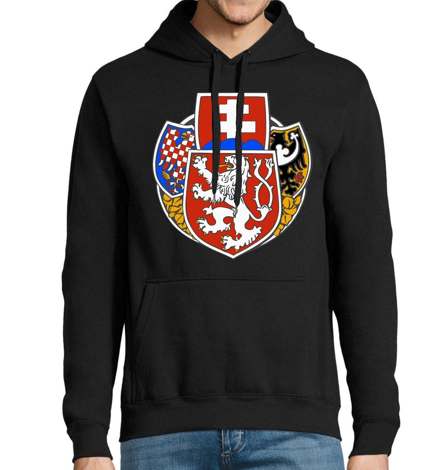 Pánská mikina Československé legie. Znak používaný československými legionáři na pokrývkách hlavy od roku 1918, tzv. sdružený znak legií. Jejich odkaz je dodnes vnímán jako jeden ze základních pilířů moderní státnosti a národní identity. Na znaku vidíme Českého lva, Moravskou orlici, Slezskou orlici a Slovenský znak.