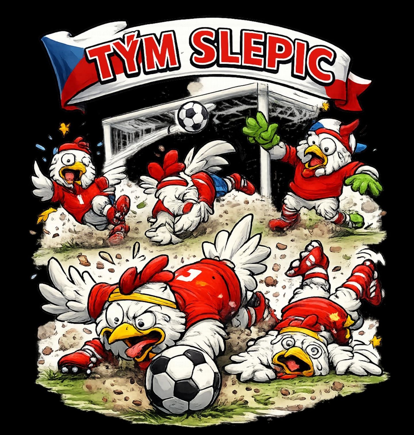 Pánské tričko Český Fotbalový Tým Slepic. Vtipné zpracování, kde slepice hrají fotbal, zaujme každého fanouška i milovníka zvířat. Tento design je ideální pro všechny, kteří milují fotbal a fandí srdcem – ať už na hřišti nebo u televize. Slepice, fotbal a Česko tvoří jedinečnou kombinaci, která zaručeně pobaví a odliší tě od ostatních. Skvělý tip na dárek pro fanoušky i hráče.