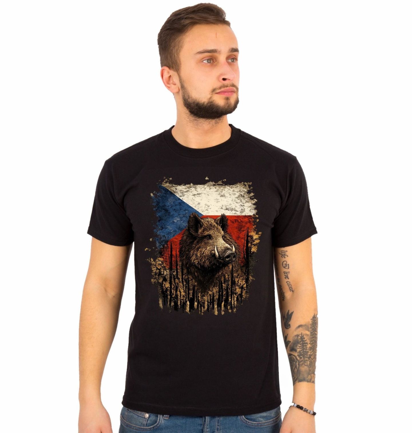Pánské tričko Český Kanec. Motiv doplňuje stylizovaná vlajka, která jasně odkazuje na Česko a tradice, které ctí každý myslivec. Detailní zpracování zvířete připomíná divoký vepř v jeho přirozené síle a hrdosti, což z motivu dělá ideální volbu pro milovníky lesa, lovu i české krajiny. Pokud máš blízko k přírodě a Česká republika je tvým domovem, tento design skvěle podtrhne tvoji vášeň i osobní styl.