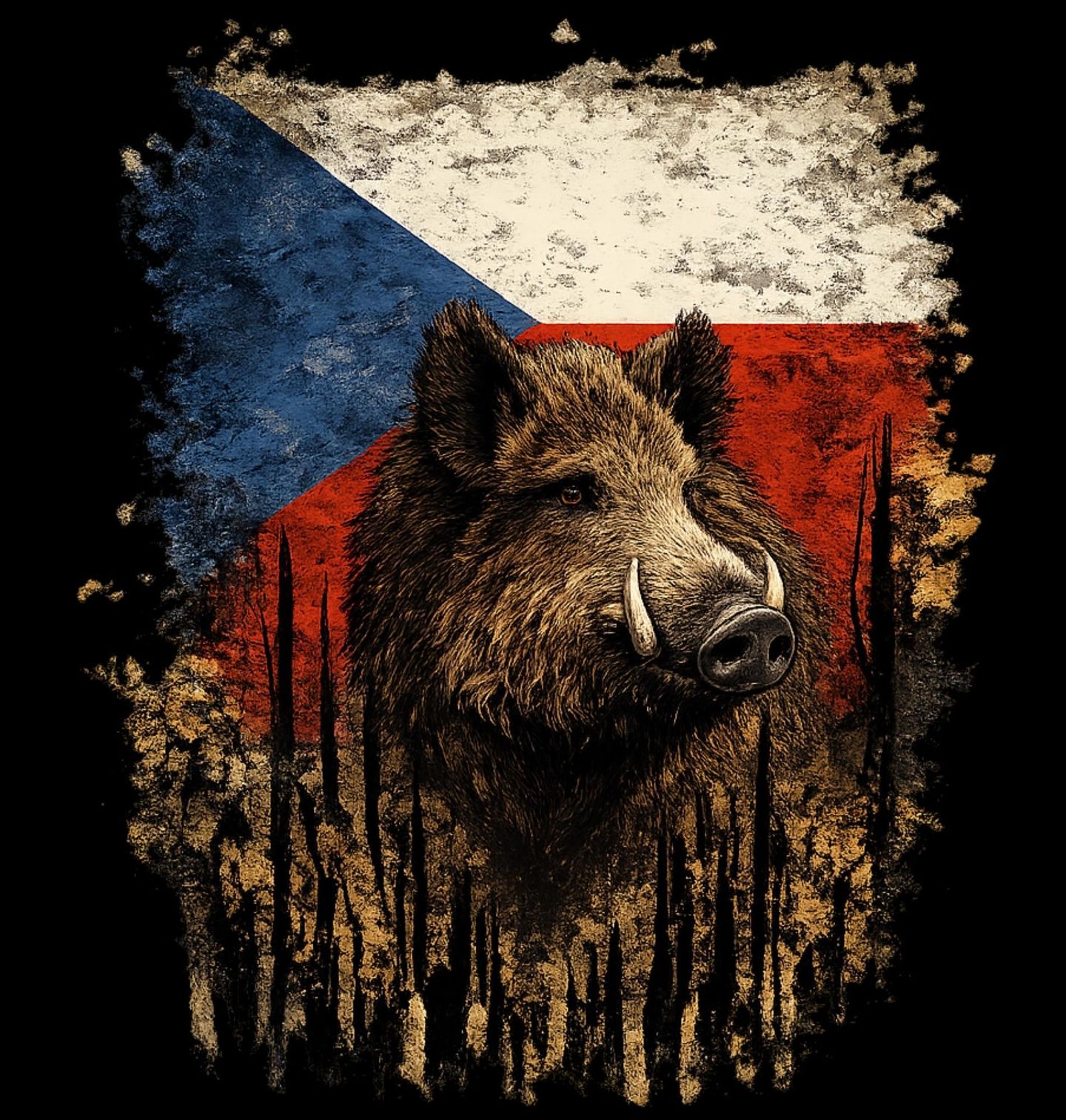 Pánská mikina Český Kanec. Motiv doplňuje stylizovaná vlajka, která jasně odkazuje na Česko a tradice, které ctí každý myslivec. Detailní zpracování zvířete připomíná divoký vepř v jeho přirozené síle a hrdosti, což z motivu dělá ideální volbu pro milovníky lesa, lovu i české krajiny. Pokud máš blízko k přírodě a Česká republika je tvým domovem, tento design skvěle podtrhne tvoji vášeň i osobní styl.