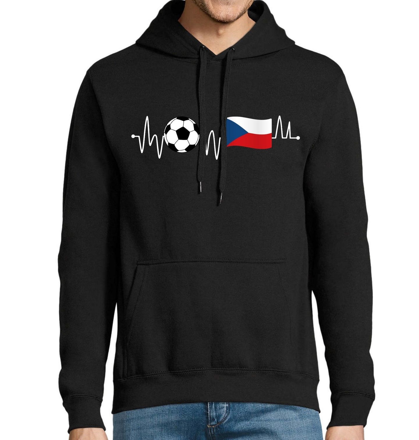 Pánská mikina Český Kardiogram a Fotbal. Stylový motiv propojující kardiogram, fotbal a Česko v jednoduchém, ale silném designu. Křivka srdečního tepu (kardiogram) symbolizuje vášeň pro sport, která je doplněna o fotbalový míč a českou vlajku jako znak podpory a hrdosti. Minimalistické provedení z něj dělá ideální motiv pro každého, kdo miluje fotbal, fandí českému týmu a má sport doslova v srdci.