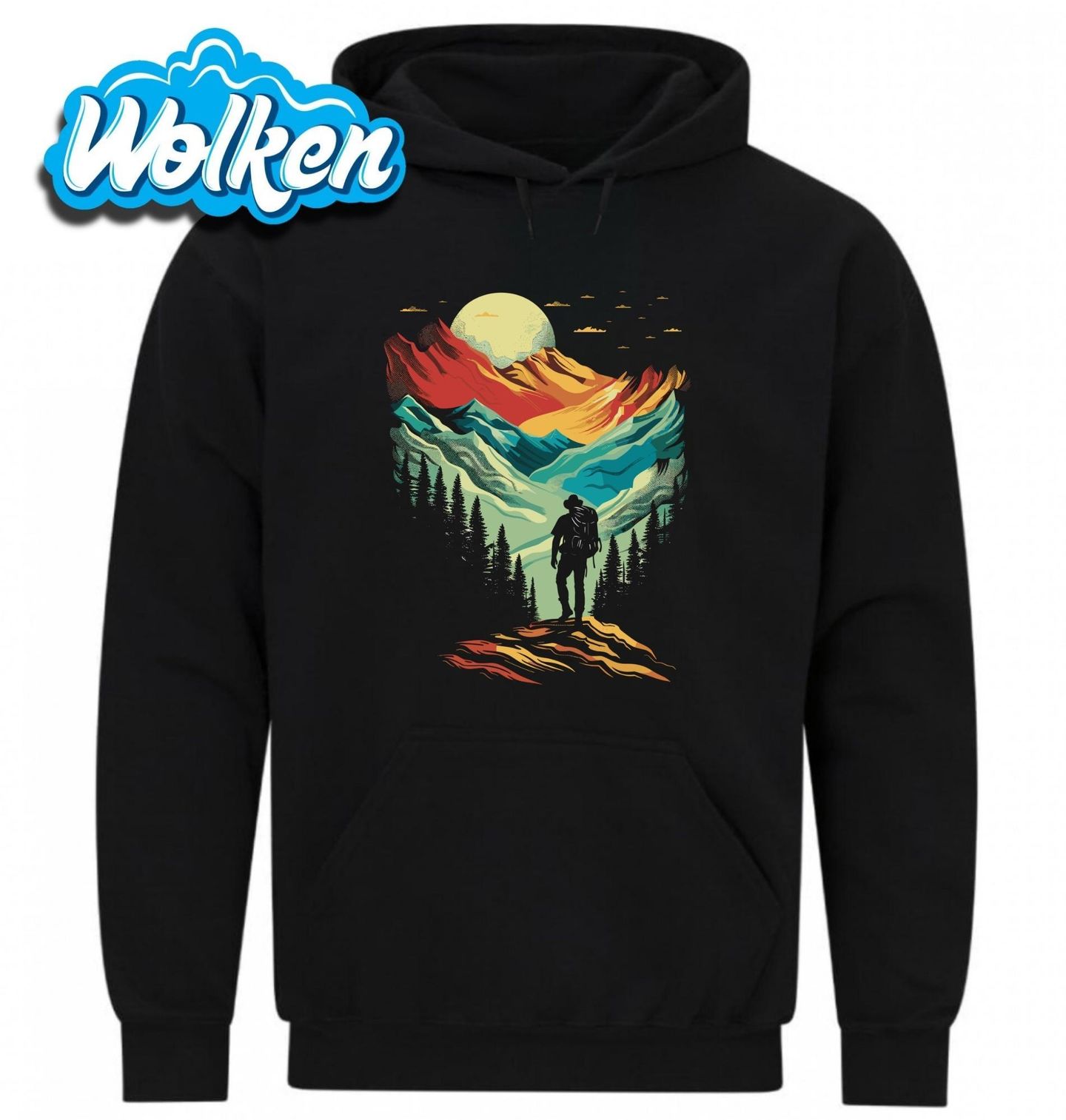 Pánská mikina Cesta do divočiny Mountain Hiker. Někdy nejsou potřeba slova – stačí ti batoh, hory před tebou a svoboda v srdci. Každý krok je příběh, každá hora výzva. Tam někde v dálce je klid, který hledáš.