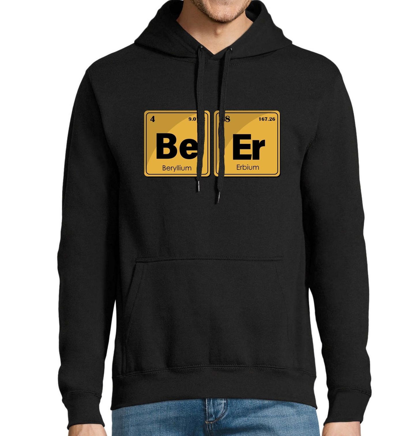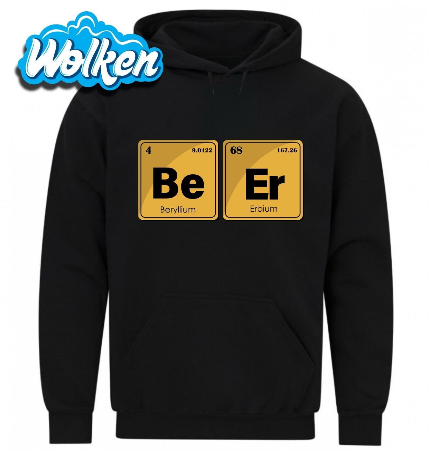 Pánská mikina Chemické prvky Pivo Beer. Periodická tabulka a věda ještě nikdy nebyla tak osvěžující – ideální výbava do laboratoře i do hospody. Značky prvků: Be (beryllium) a Er (erbium) - ideální tričko pro každého milovníka chemie a zlatavého moku.