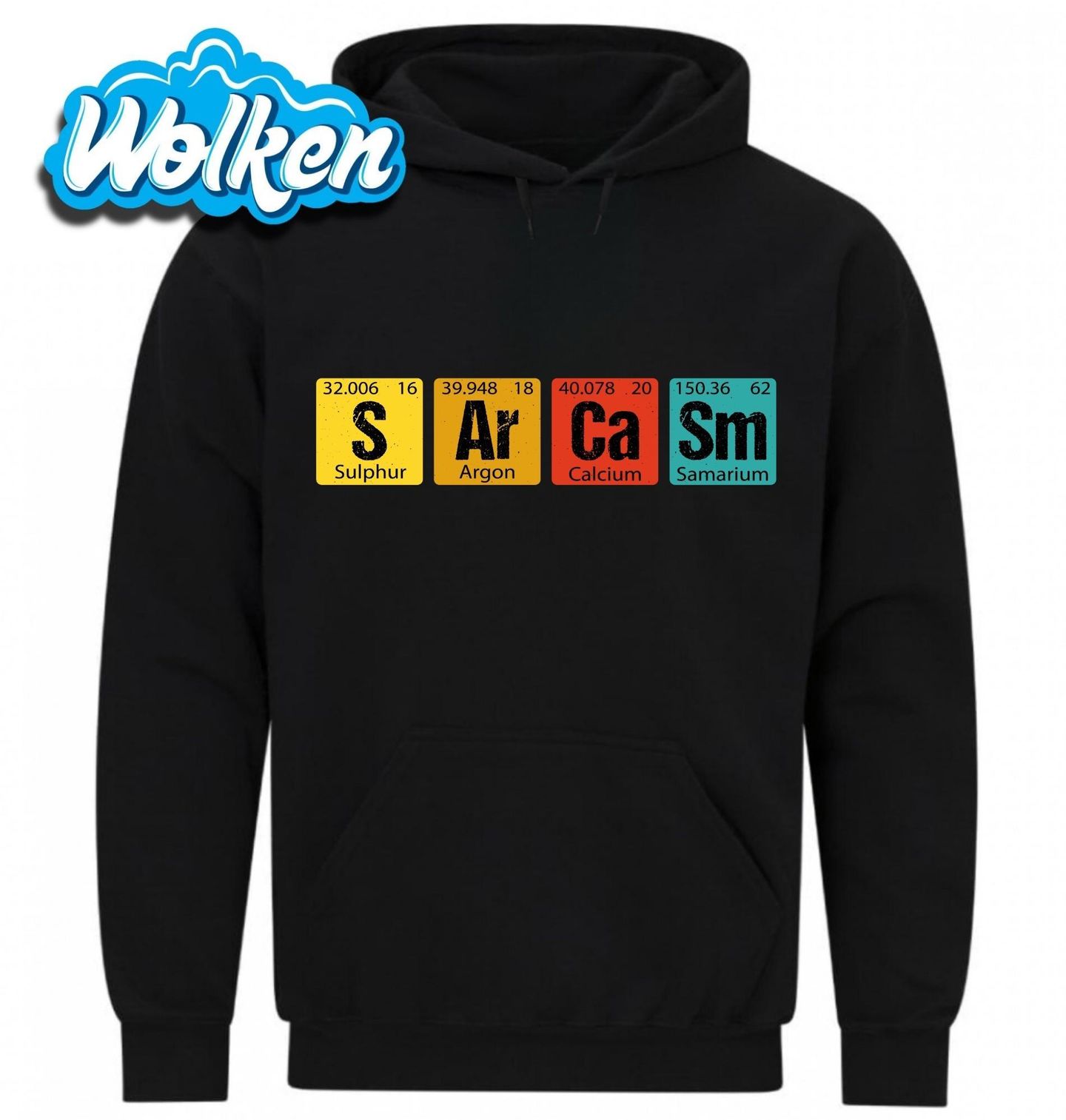 Pánská mikina Chemické prvky Sarcasm. Věda + humor = dokonalá reakce! Tento chytrý motiv skládá slovo sarcasm z prvků jako síra, argon, vápník a samar – protože i sarkasmus má svou chemii. Ideální tričko pro všechny, kdo mají vtip ve vzorci a sarkasmus v DNA. Upozornění: nošení může způsobit zvýšenou míru sarkastických poznámek v okolí.