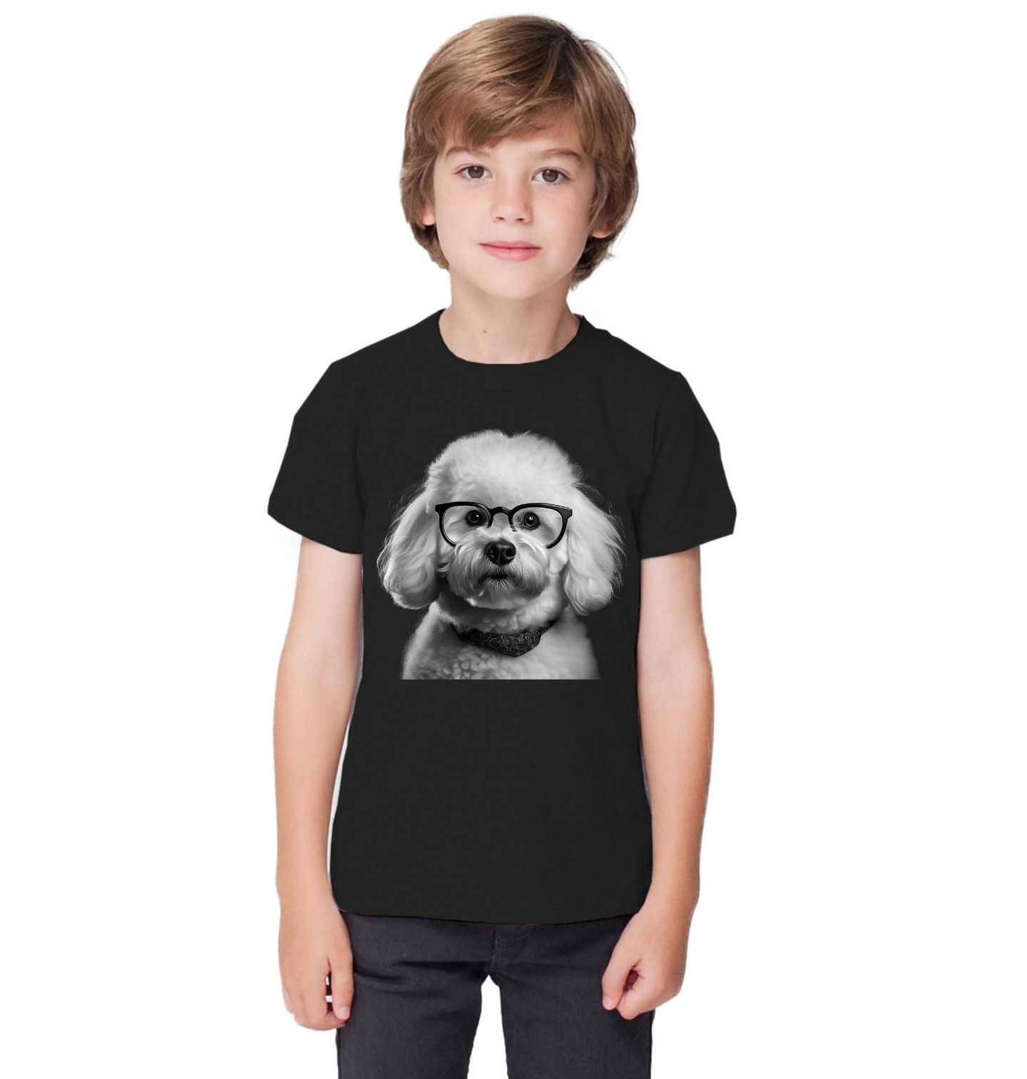 Dětské tričko Chytrý Bišonek s Brýlemi. Tento roztomilý pes působí hravě i noblesně zároveň, takže je ideální volbou pro každého, kdo miluje originální psí design. Každý pejskař ocení detailní zpracování i výraz, který dělá z motivu nepřehlédnutelný kousek. Pokud je Bišonek vaše oblíbené plemeno, tento motiv krásně vyjádří vztah mezi člověkem a jeho čtyřnohým parťákem.