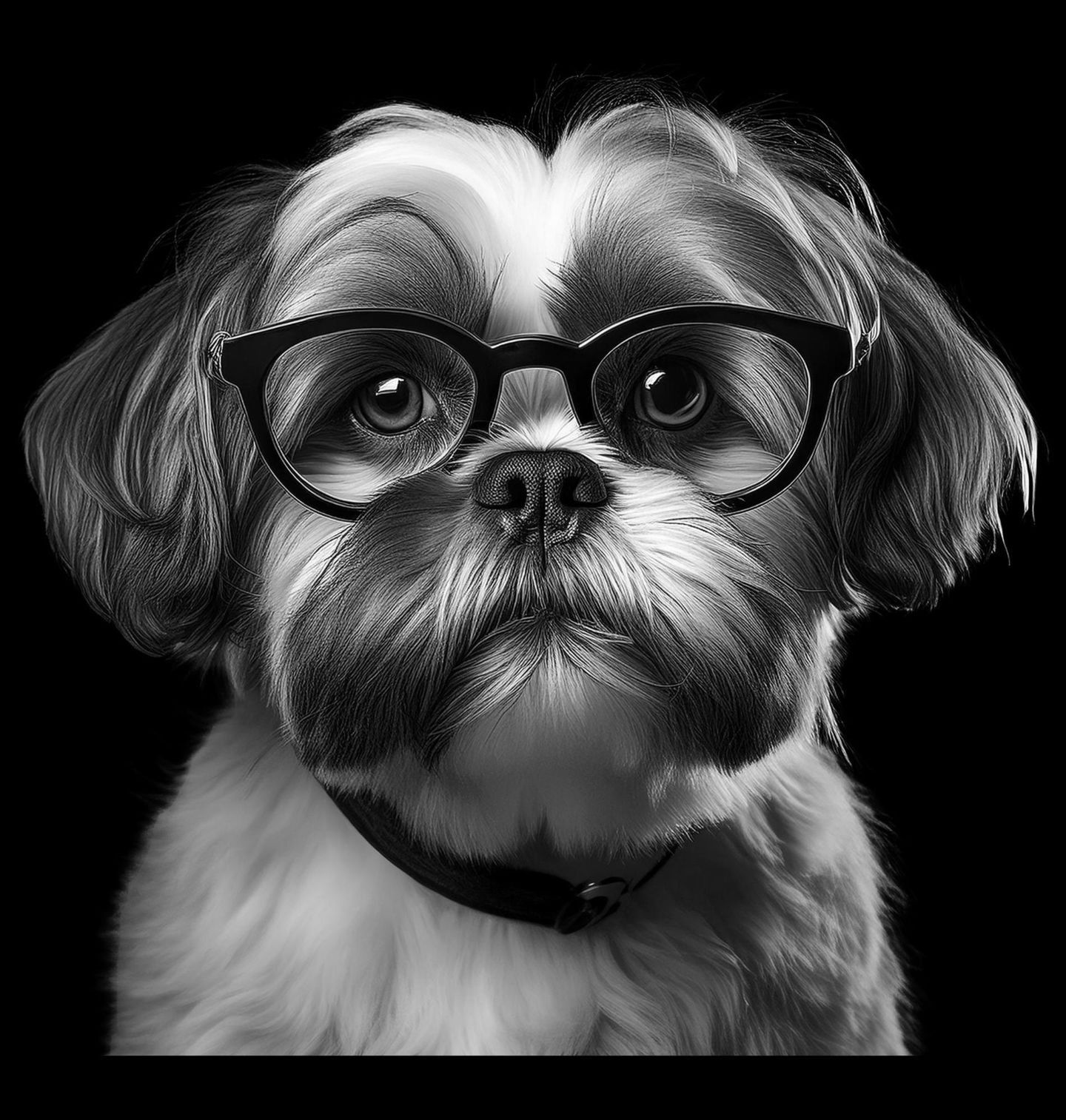 Dámské tričko Chytrý Shih-tzu s Brýlemi. Vtipný a originální motiv, kde vystupuje Shih-tzu v klasických brýlích ve stylu malého šprta, potěší každého milovníka psů i humoru. Tento design zvýrazňuje chytrý a zvědavý výraz, který k tomuto plemeni skvěle sedí. Ideální volba pro každého, kdo je hrdý pejskař a ví, že pes může být nejen roztomilý, ale i stylově „učený“.