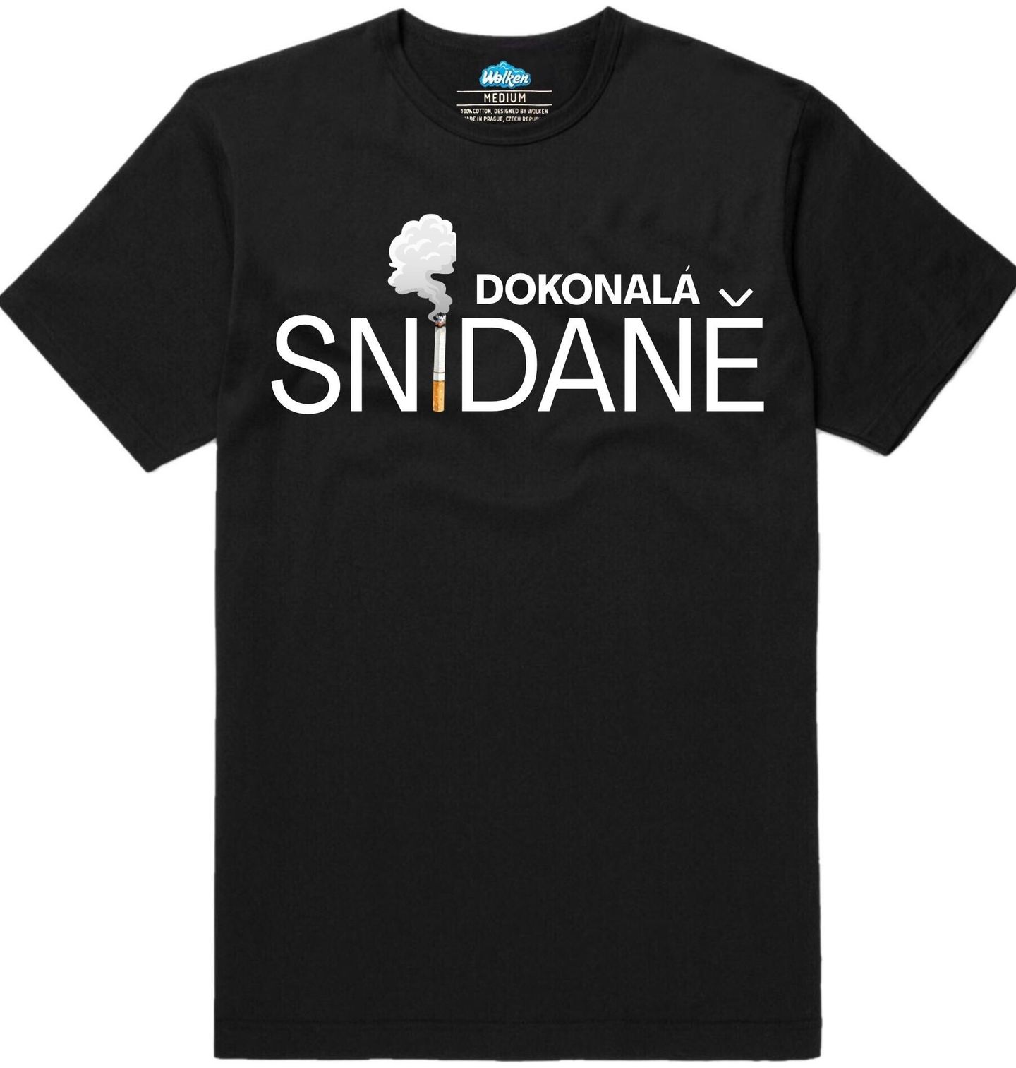 Pánské tričko Cigareta Dokonalá Snídaně. Cigareta je zde použita jako stylizovaný symbol sarkasmu a rebelie, nikoli jako propagace kouření. Motiv funguje jako vtipná narážka a odlehčený komentář ke každodenním rituálům. Díky čistému kontrastnímu provedení se hodí pro každého, kdo má rád výrazné a jednoduché grafické motivy.