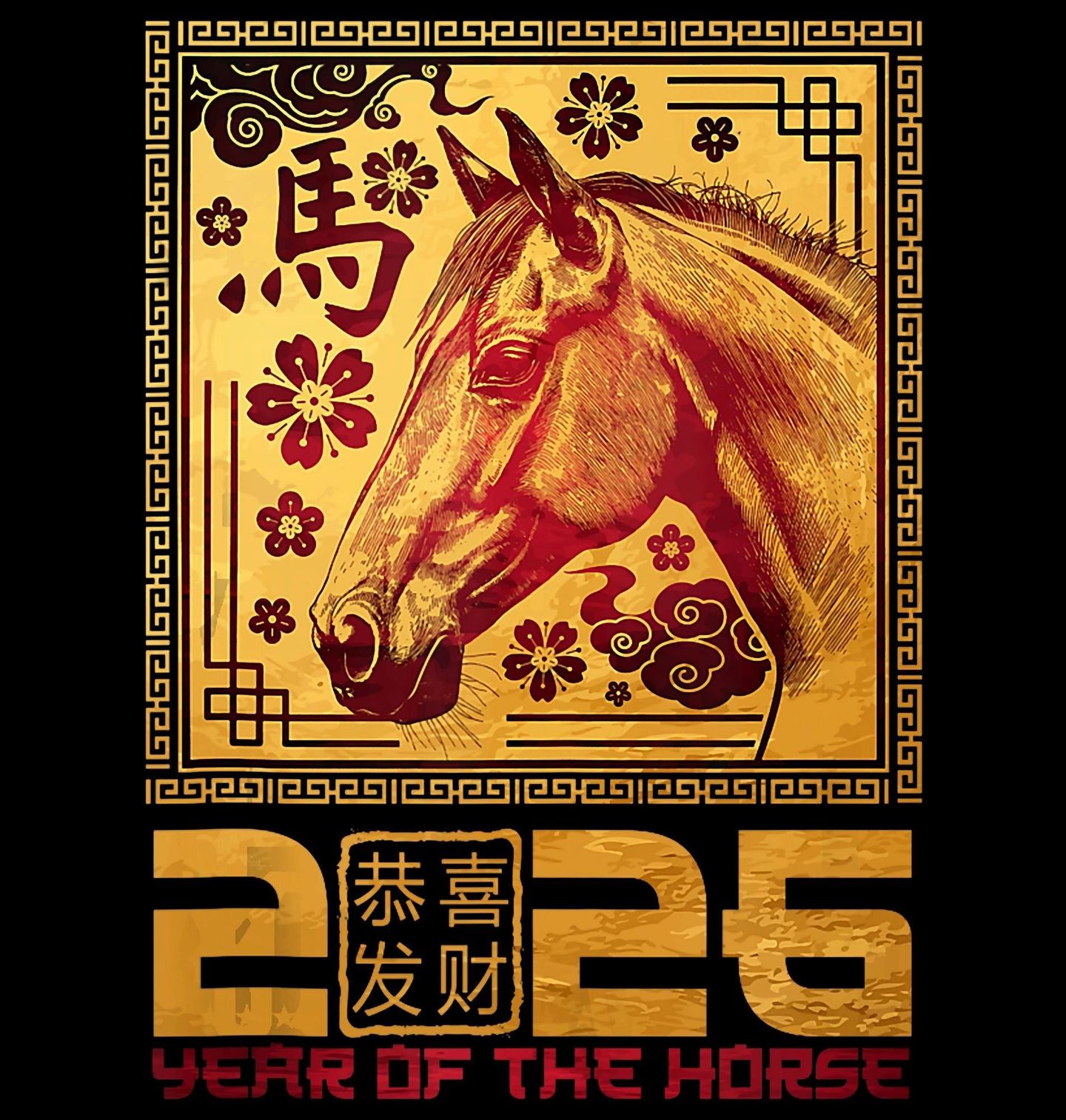 Dámské tričko Čínský Rok Ohnivého Koně 2026. Oslavte čínský rok koně stylově s tímto výrazným motivem koně inspirovaným tradiční čínskou kaligrafií a symbolikou. Tento design spojuje krásu koně, kulturní význam lunárního kalendáře a bohaté orientální ornamenty do jednoho vizuálně působivého celku. Kůň je v čínské astrologii symbolem síly, svobody a vytrvalosti.