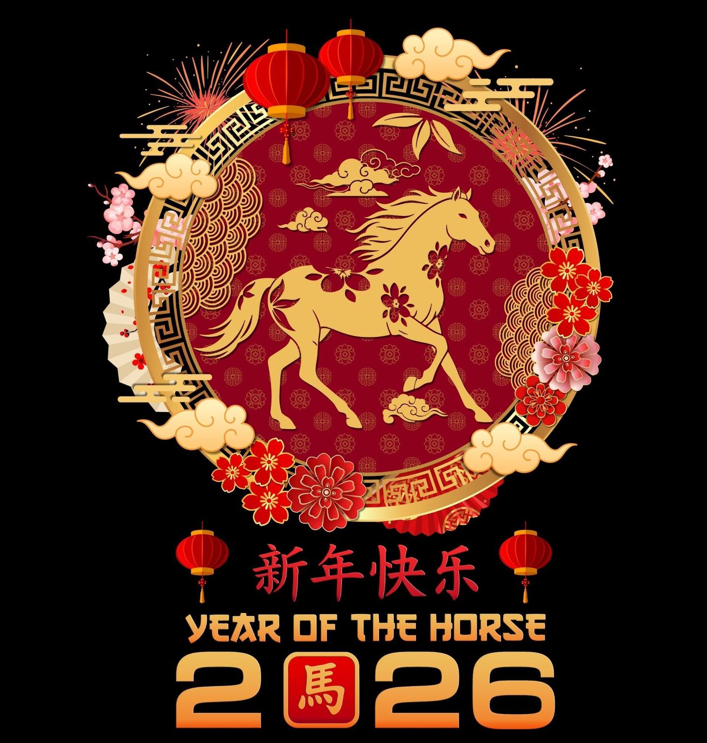 Pánské tričko Čínský Rok Ohnivého Koně Prosperity 2026. Kůň - jeden z nejvýznamnějších symbolů čínské astrologie, spojený s energií, odvahou a pohybem vpřed. Motiv je vytvořen pro nový rok a vychází z tradiční estetiky, která doprovází čínský rok ohnivého koně – období dynamiky, prosperity a osobního růstu. Zlaté a červené tóny symbolizují štěstí, ochranu a hojnost, zatímco dekorativní prvky dodávají motivu autentický sváteční charakter.