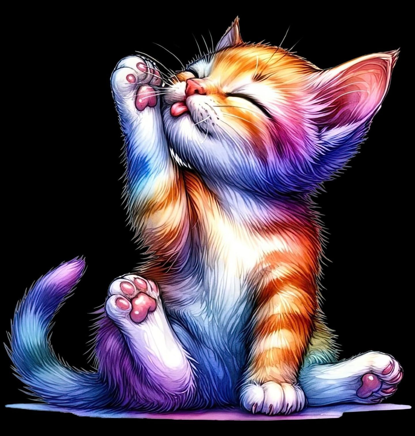 Pánská mikina Čistící se Kotě. Tento motiv zachycuje kotě, jak se čistí – přirozený a roztomilý okamžik, kdy se kočka stará sama o sebe. Detailní ilustrace zvýrazňuje hebkou srst, jemný pohyb tlapky a klidnou atmosféru, kterou kotě při péči o svou srst vyzařuje. Design je ideální pro všechny milovníky zvířat, zejména pro ty, kteří mají blízký vztah ke kočkám.