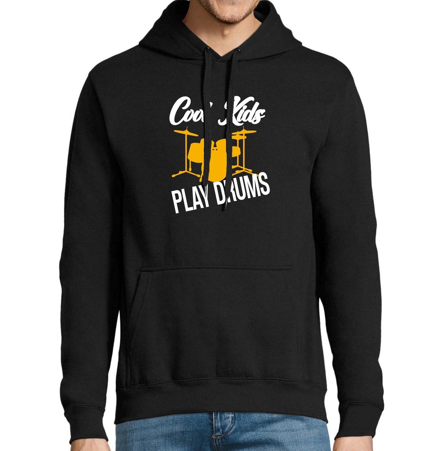 Pánská mikina Cool děti hrají na bubny. „Cool Kids Play Drums“ a silueta zlaté soupravy bubnů je určeno pro všechny mladé, kteří žijí hudbou a milují bicí. Kontrastní kombinace černého pozadí, výrazného bílého a žlutého písma a kompletního bubenického setu dodává tričku moderní a hravý vzhled. Perfektní dárek pro každého bubeníka a studenta hudebky.
