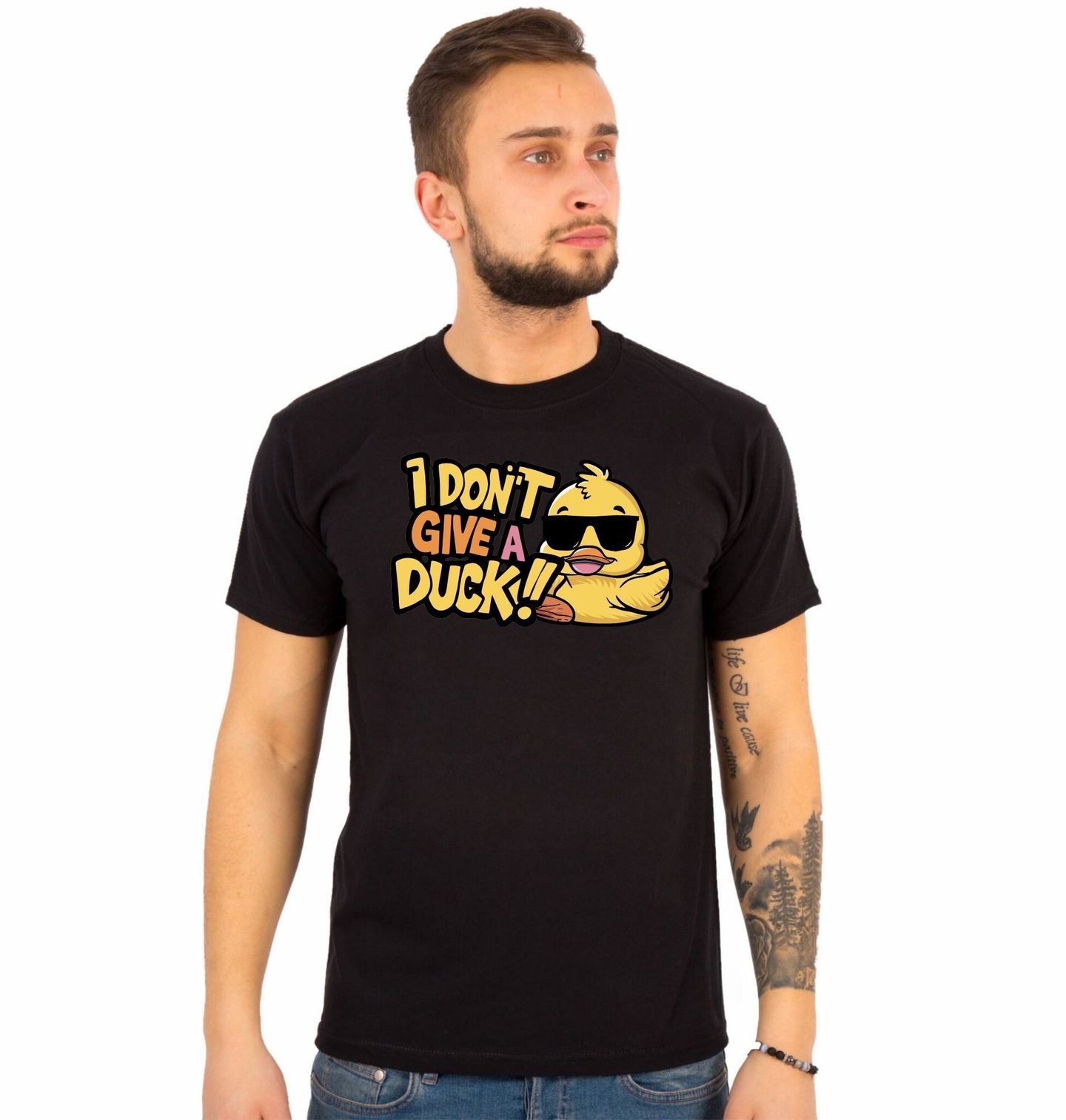 Pánské tričko Cool Kachna I Don’t Give a Duck. Dominantou designu je stylová kachna se slunečními brýlemi, která vyzařuje pohodu, nadhled a pořádnou dávku drzosti. Tato originální kachna je ideální pro všechny, kdo mají smysl pro humor a berou život s lehkostí. Skvěle se hodí jako výrazný prvek na oblečení nebo doplňky a zaručeně pobaví okolí. Překlad textu znamená: „Je mi to jedno“ (parodie na „I don’t give a fuck“).