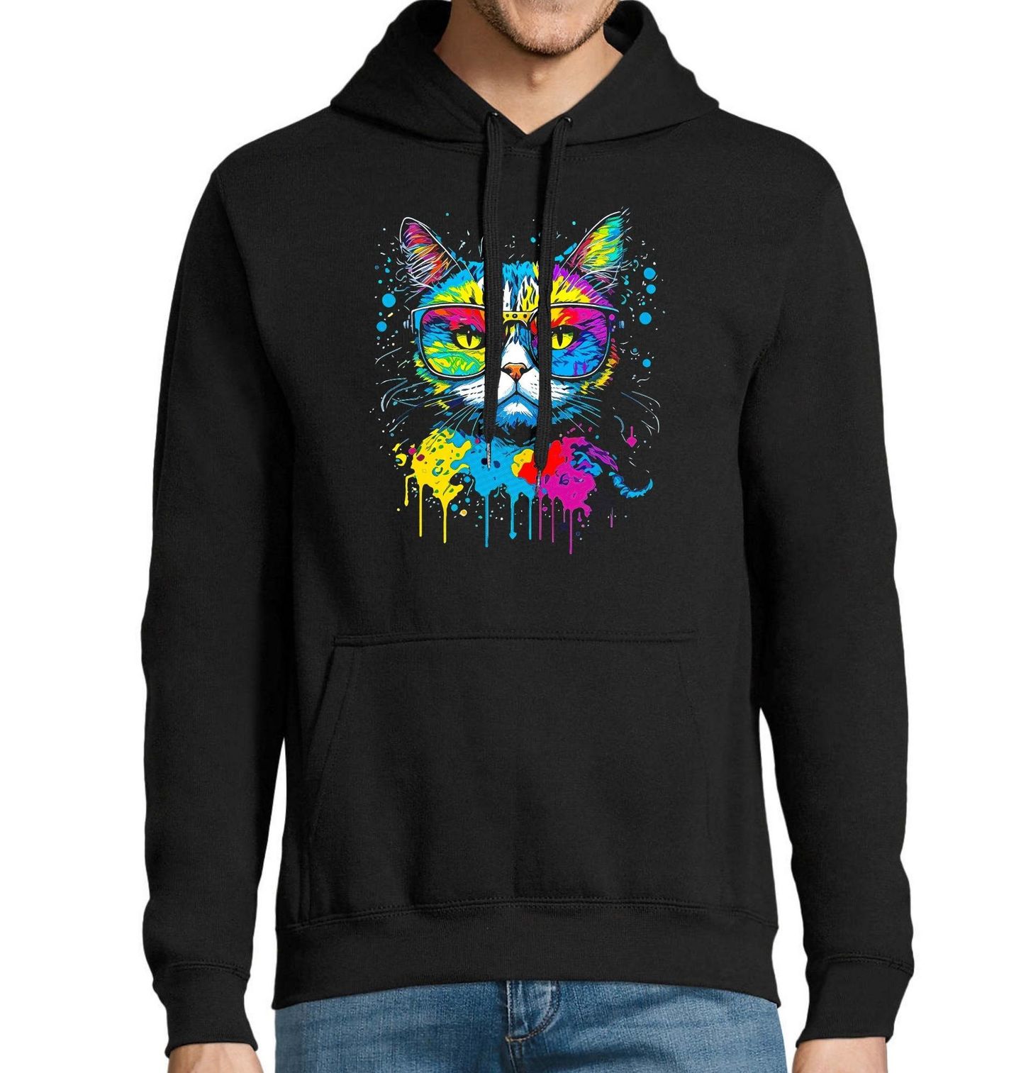 Pánská mikina Cool Kočka v Brýlích. Tato cool kočka je ideální pro každého, kdo má rád kombinaci originality, barev a trochu rebelie. Díky živým odstínům jako jsou žlutá, tyrkysová, červená, fialová nebo modrá, se staneš středem pozornosti na každé akci. Skvělé jako dárek pro všechny, kdo milují kočky, street art nebo hledají tričko s pořádnou dávkou osobnosti.
