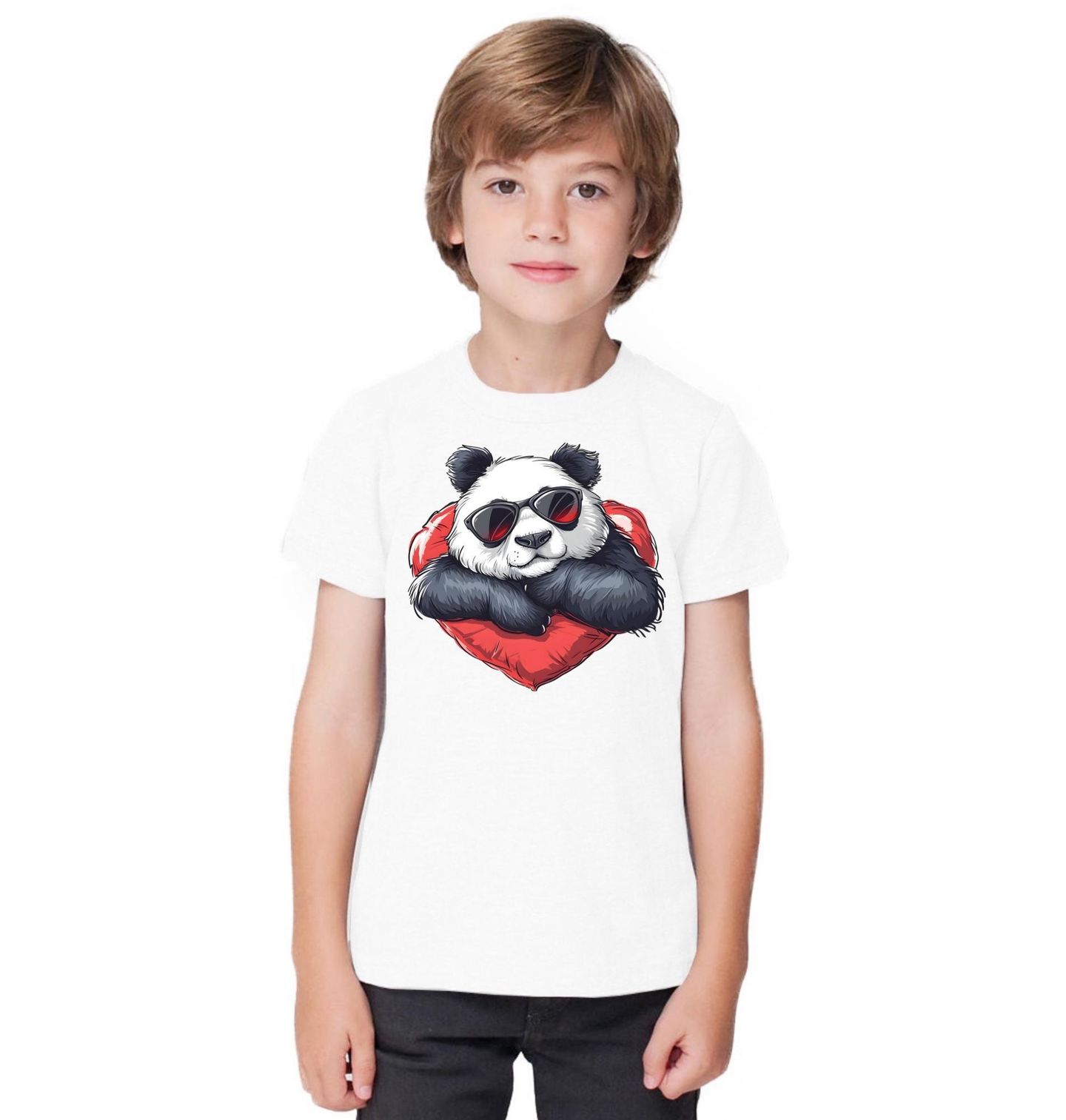 Dětské tričko Cool Panda se Srdcem. Stylový a roztomilý motiv, který spojuje pohodovou náladu a lásku do jednoho obrázku. Tahle panda s tmavými brýlemi odpočívající na měkkém srdce působí sebevědomě, klidně a zároveň naprosto cool. Perfektní kombinace roztomilosti a moderního stylu, která zaujme na první pohled.