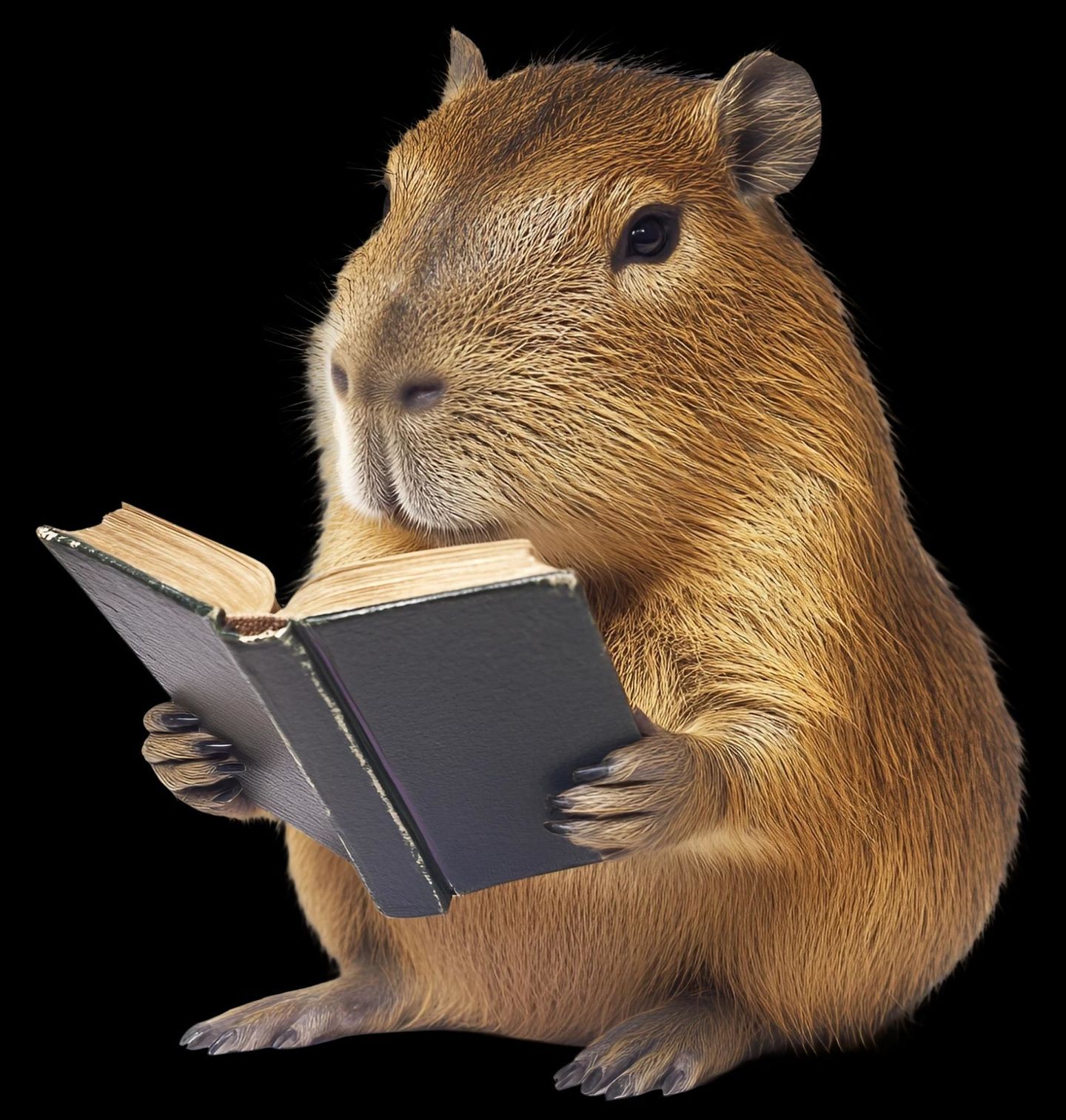 Pánské tričko Čtenář Kapybara. Originální design zobrazuje klidnou kapybara, která si užívá čtení a drží v tlapkách otevřené knihy. Motiv působí hravě i uklidňujícím dojmem a potěší každého, kdo miluje zvířata i svět literatury. Detailní zpracování dodává ilustraci jemný realistický styl a dělá z ní ideální doplněk pro každodenní nošení.